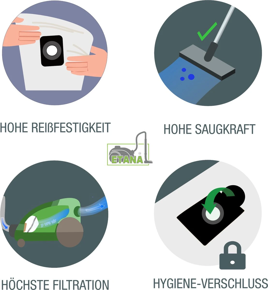 Etana stofzuigerzakken voldoen aan de hoogste eisen tegen een lage prijs.