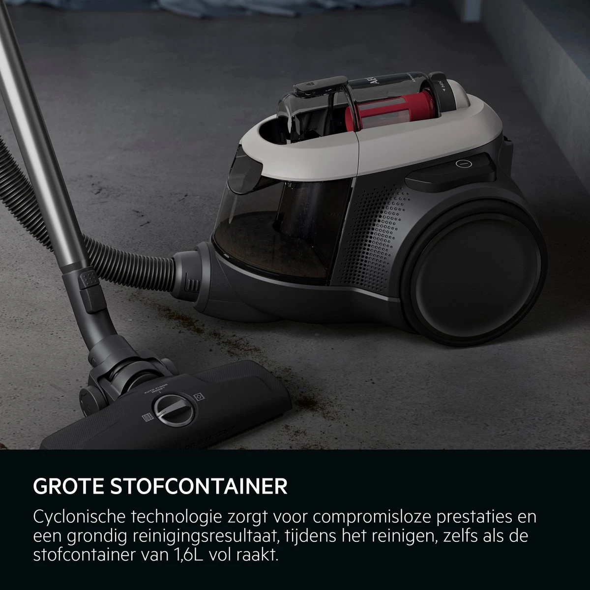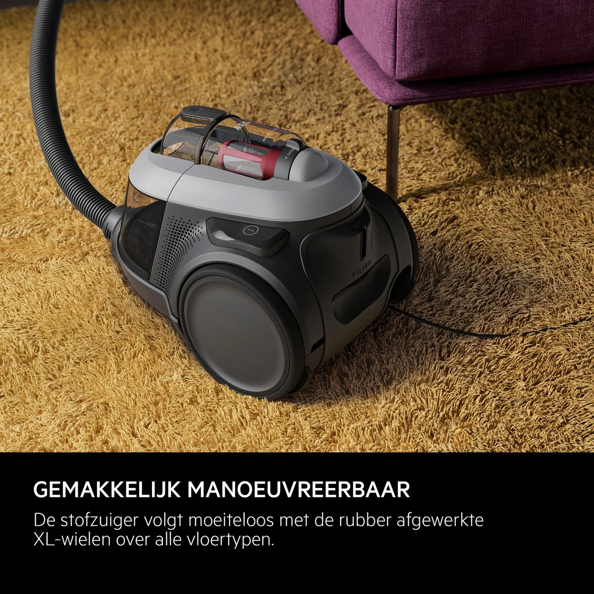 De AEG Animal 6000 is een stofzuiger zonder zak, voorzien van extra grote wielen. De XL-wielen zijn afgewerkt met een rubbercoating waardoor ze meer wendbaar zijn en toch perfect beschermd zijn op alle oppervlakken. Het ontwerp van de wielen zorgt voor een betere manoeuvreerbaarheid en een soepelere reinigingservaring.