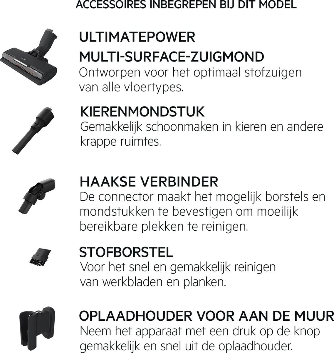 - Ultimate power Multi-Surface-zuigmond. Ontworpen voor het optimaal stofzuigen van alle vloertypes.