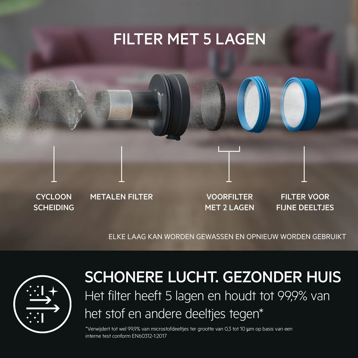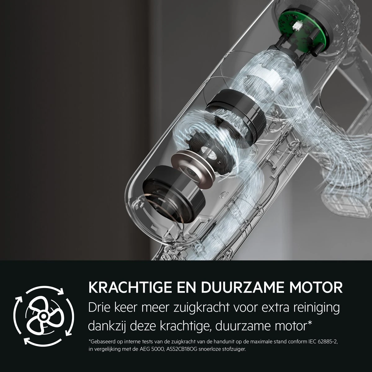 De krachtige motor gaat lang mee en levert uitzonderlijke prestaties. Ervaar hoe de stofzuiger elke keer weer alle stof en vuil verwijdert en brandschone oppervlakken achterlaat. Onze Brush Less Direct Current motor voorkomt mechanische wrijving en heeft zo een langere levensduur.