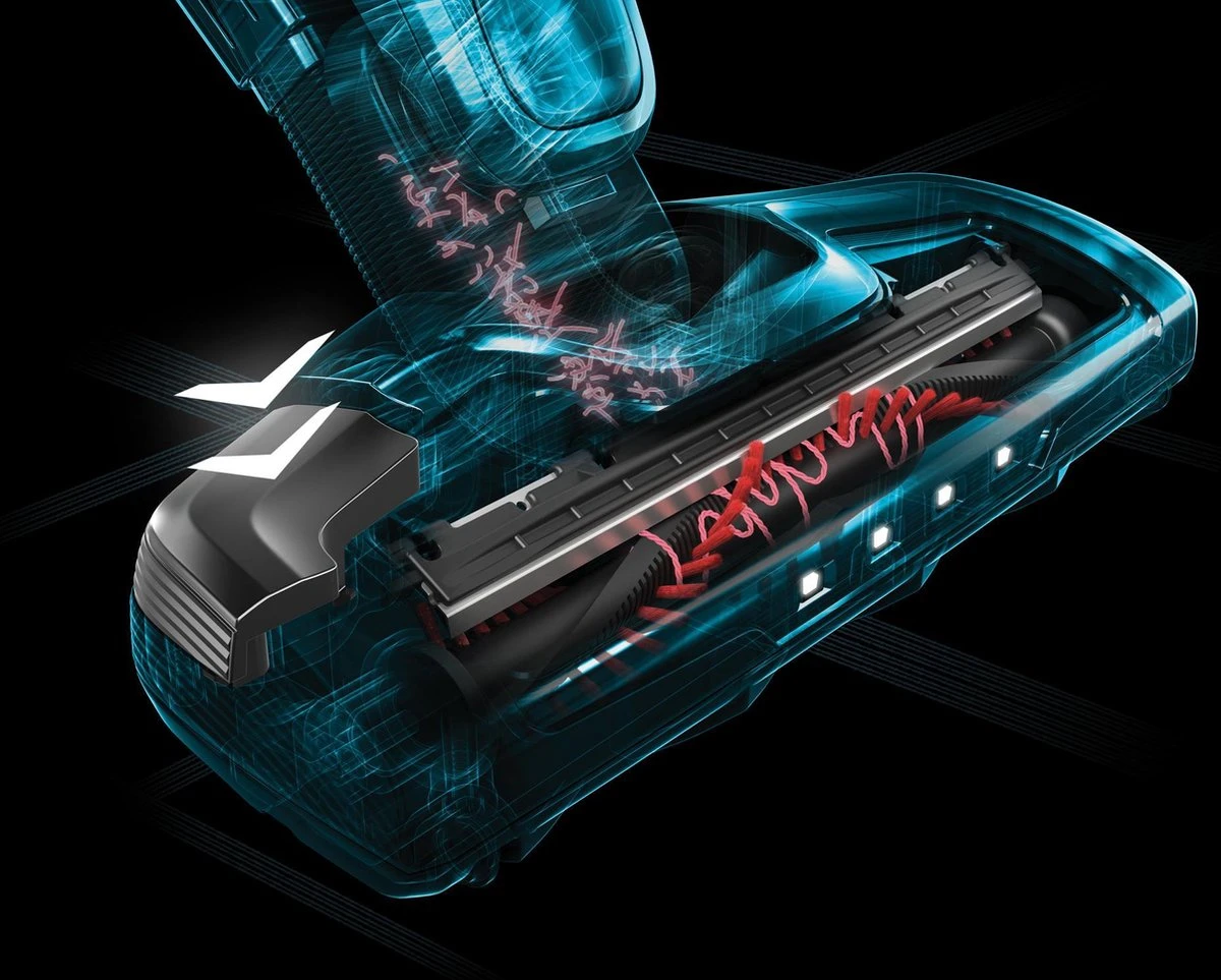 De revolutionare en gepatenteerde Roll Clean Technologie zorgt ervoor dat haren en vezels die vast zijn komen te zitten in de roterende borstel gemakkelijk verwijderd kunnen worden. Druk met je voet op het pedaal bovenop de zuigmond en een mes zal alle haren en vezels verwijderen. Zo hoef je nooit meer zelf handmatig vuil van de borstel te verwijderen. Heel erg gemakkelijk.