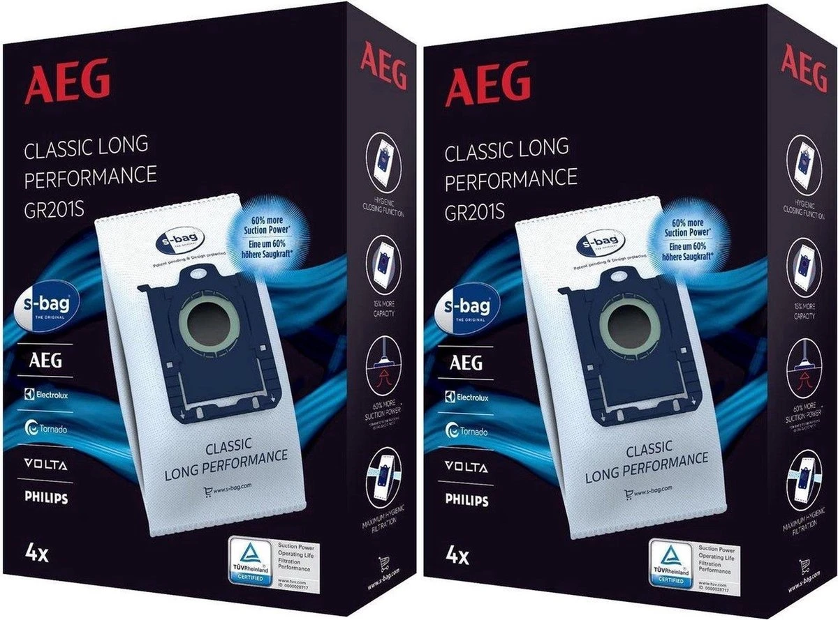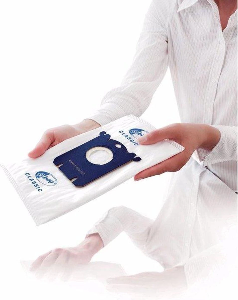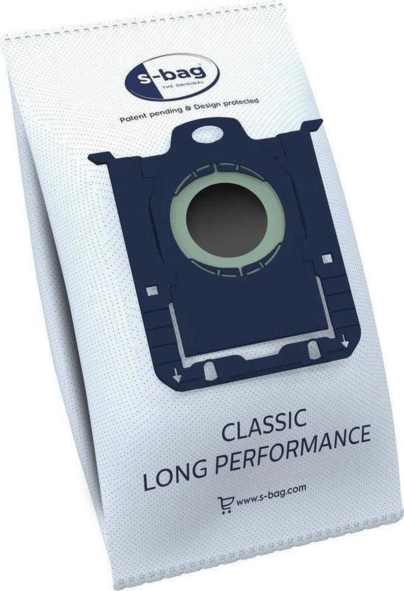 S-bag Classic Long Performance gaat tot 50% langer mee dan een gewone papieren zak! Dit is getest en bewezen door het onafhankelijke testinstituut TÜV Rheinland Group. Maximale zuigkracht: het synthetische materiaal van de zak staat garant voor eenoptimale luchtstroom. Dit betekent voor u schonere, meer constante zuigkracht terwijl de stofzuigerzak wordt gevuld. Goede filtratie: deze stofzuigerzak filtert maximaal 99% van 1 micron grote stofdeeltjes (dat is 15 keer kleiner dan de diameter van een menselijke haar). Ook filtert de zak de lucht 40% efficiënter. Hoge weerstand: dankzij het synthetische materiaal van hoge kwaliteit scheurt de zak niet bij hoge zuigkracht en wordt niet beschadigd bij het opzuigen van harde deeltjes.
