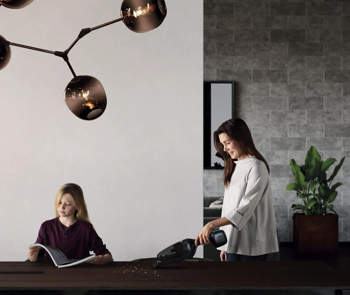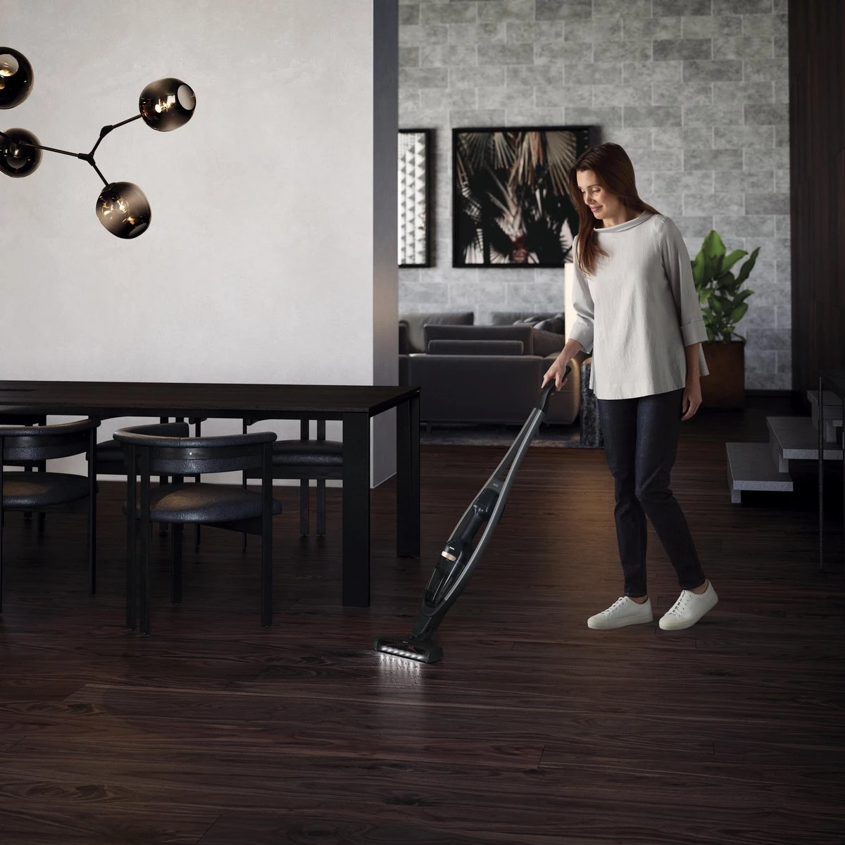 Dankzij het volledige kantelbare slanke design, past de stofzuiger onder meubels met een hoogte vanaf de vloer van 140 mm. De stofzuiger heeft een ergonomische grip zodat deze altijd perfect in de hand ligt.