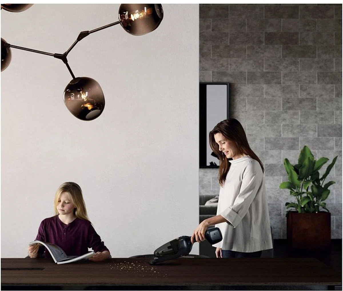 - Dankzij het volledige kantelbare slanke design, past de stofzuiger onder meubels met een hoogte vanaf de vloer van 140 mm