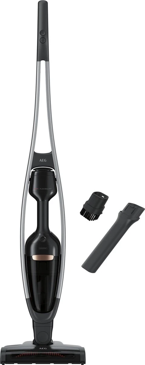 De AEG QX9-1-40GG – Steelstofzuiger is een krachtige, lichtgewicht stofzuiger met geïntegreerde uitneembare kruimeldief. Het design van de uitneembare kruimeldief zorgt voor een maximale geluidsreductie d.m.v. een gestructureerde luchtstroom en een gedempte uitlaat. De AEG QX9 heeft een uitzonderlijk lange gebruiksduur tot 55 minuten op eco-modus 25,2V. De stofzuiger heeft 3 vermogensinstellingen en een geheugenfunctie – start altijd opnieuw op de laatst ingestelde vermogensinstelling. Dankzij het volledige kantelbare slanke design, past de stofzuiger onder meubels met een hoogte vanaf de vloer van 140 mm. De stofzuiger heeft een ergonomische grip zodat deze altijd perfect in de hand ligt.
