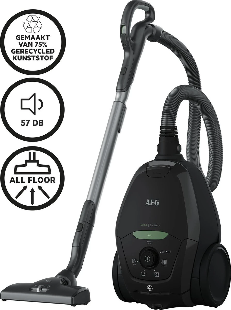 Met de AEG VX82-1-ECO waan je jezelf in een nieuw tijdperk. Deze ECO stofzuiger is voorzien van SmartMode-technologie, PureSound-systeem en een OneGo Power Clean-zuigmond voor alle vloertypes. Tot in detail ontwikkelt om efficiënt te reinigen met behulp van een unieke intelligente technologie en dat terwijl deze ongelooflijk geruisloos te werk gaat.