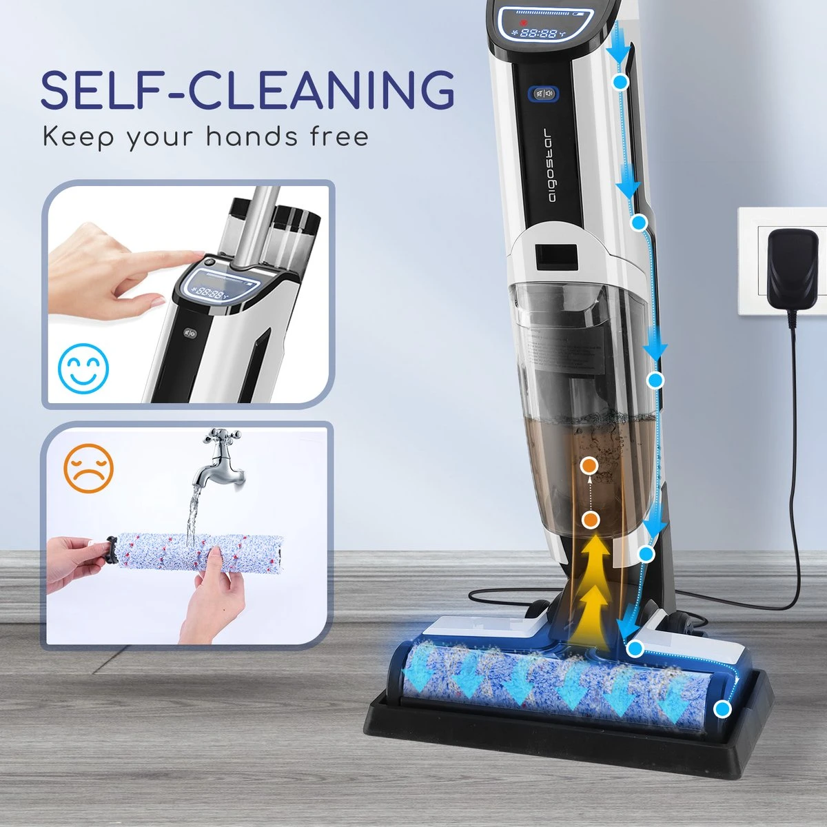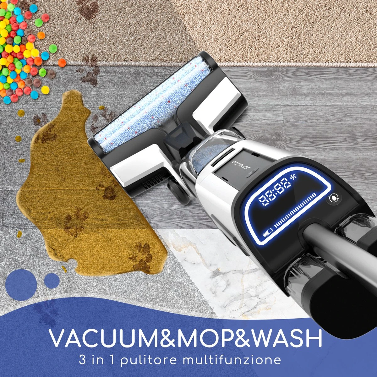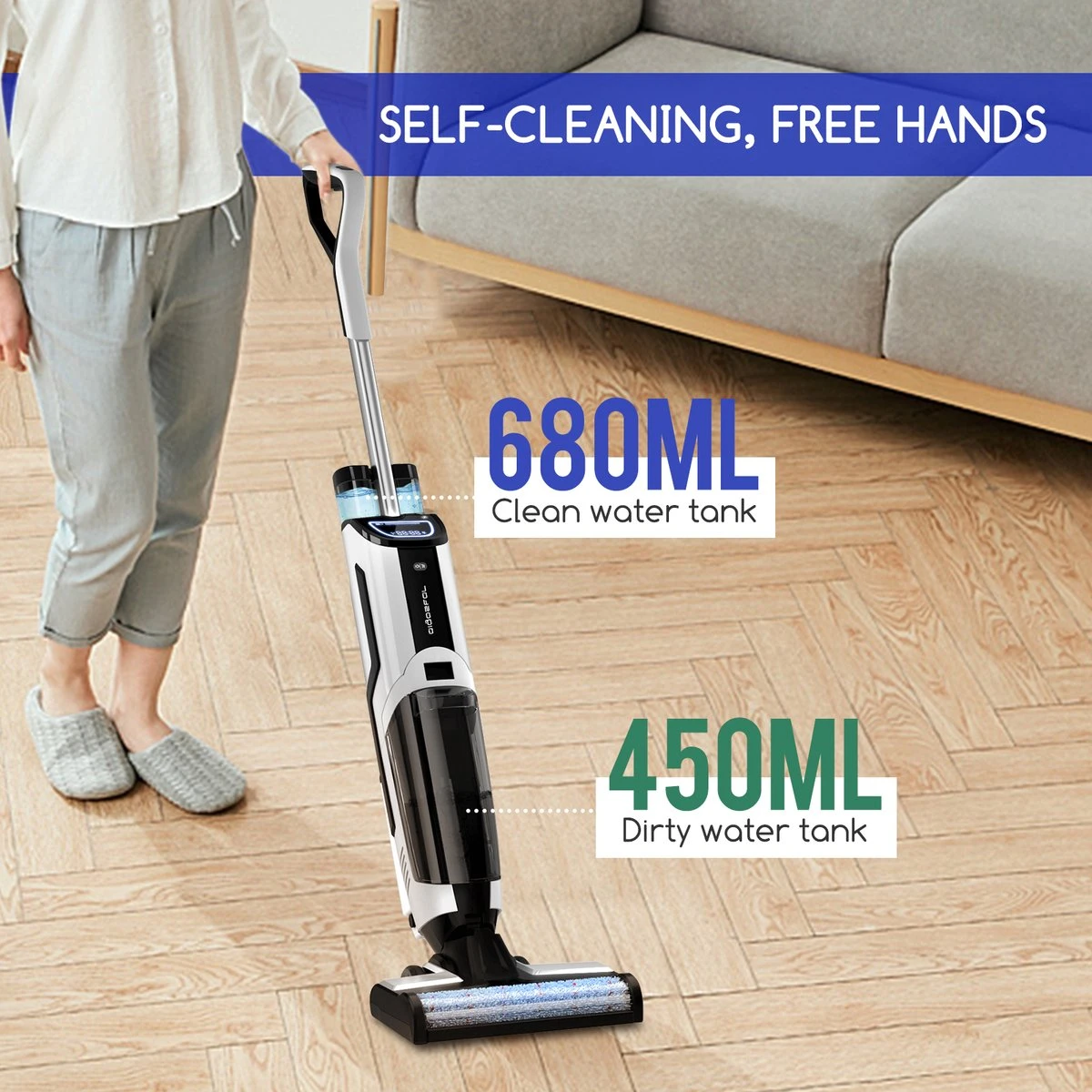 De Aigostar Whale draadloze steelstofzuiger is een krachtige Vloerreiniger met een dubbele werkmodus voor stofzuigen en dweilen, waardoor het gemakkelijk is om nat en droog vuil schoon te maken. De krachtige zuigkracht ruimt met gemak vlekken van de vloer op. Bovendien wordt het geleverd met een knop voor de zelfreinigende functie, waardoor je je het niet handmatig hoeft te demonteren en schoon te maken. Ontzorg jezelf en focus op het schoonmaken. Daarnaast is deze Vloerreiniger voorzien van een LED-display en is het gemakkelijk te gebruiken met de gesproken instructies.
