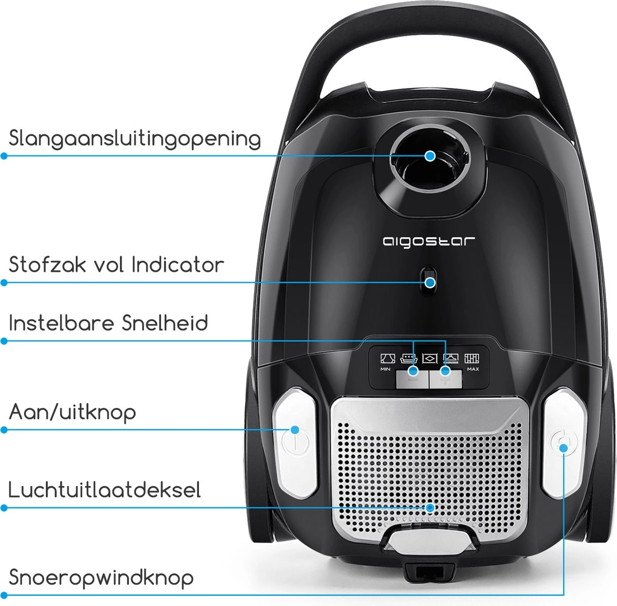 Voorzien van een sterke motor met een hoog vermogen van 800 watt die een vacuümzuigkracht tot 21.5 KPA genereert is de Aigostar Gordon stofzuiger een vrij sterke stofzuiger. Grote deeltjes, klein afval, stof, vuil op het vloeroppervlak is allemaal geen probleem voor dit model. Doordat de inhoud van de opvangbak 3 liter is, hoef je de stofzak niet vaak te vervangen. Deze zak is gemaakt van niet-geweven materiaal, waardoor het mileuvriendelijk is.