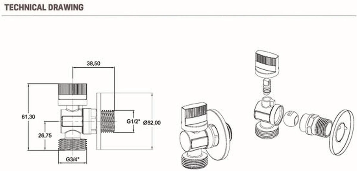 | Verpakkingsinhoud | 1 x Aloni Wasmachinekraan Chroom incl. rozet – aansluiting 1/2 x 3/4 |