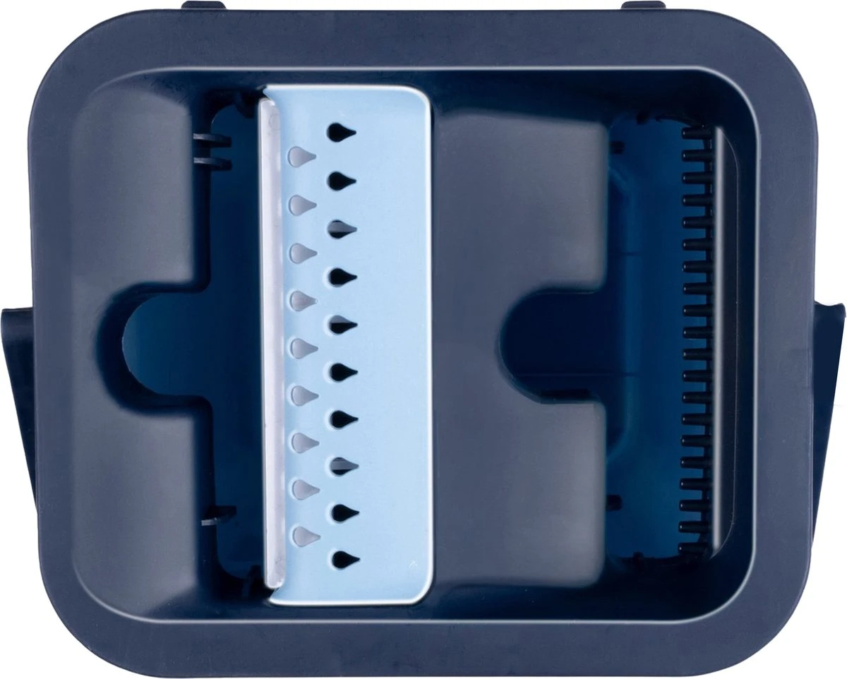 De dweilemmer in deze alpina dweilset beschikt over twee compartimenten die het schone en vieze water van elkaar gescheiden houden. Je vult simpelweg de ene kant van de emmer met schoon water, dompelt de dweil in het schone water en wringt aan de andere kant van de emmer het water gemakkelijk uit de dweil. Zo hoef je nooit meer met je handen aan een vieze dweil te zitten.
