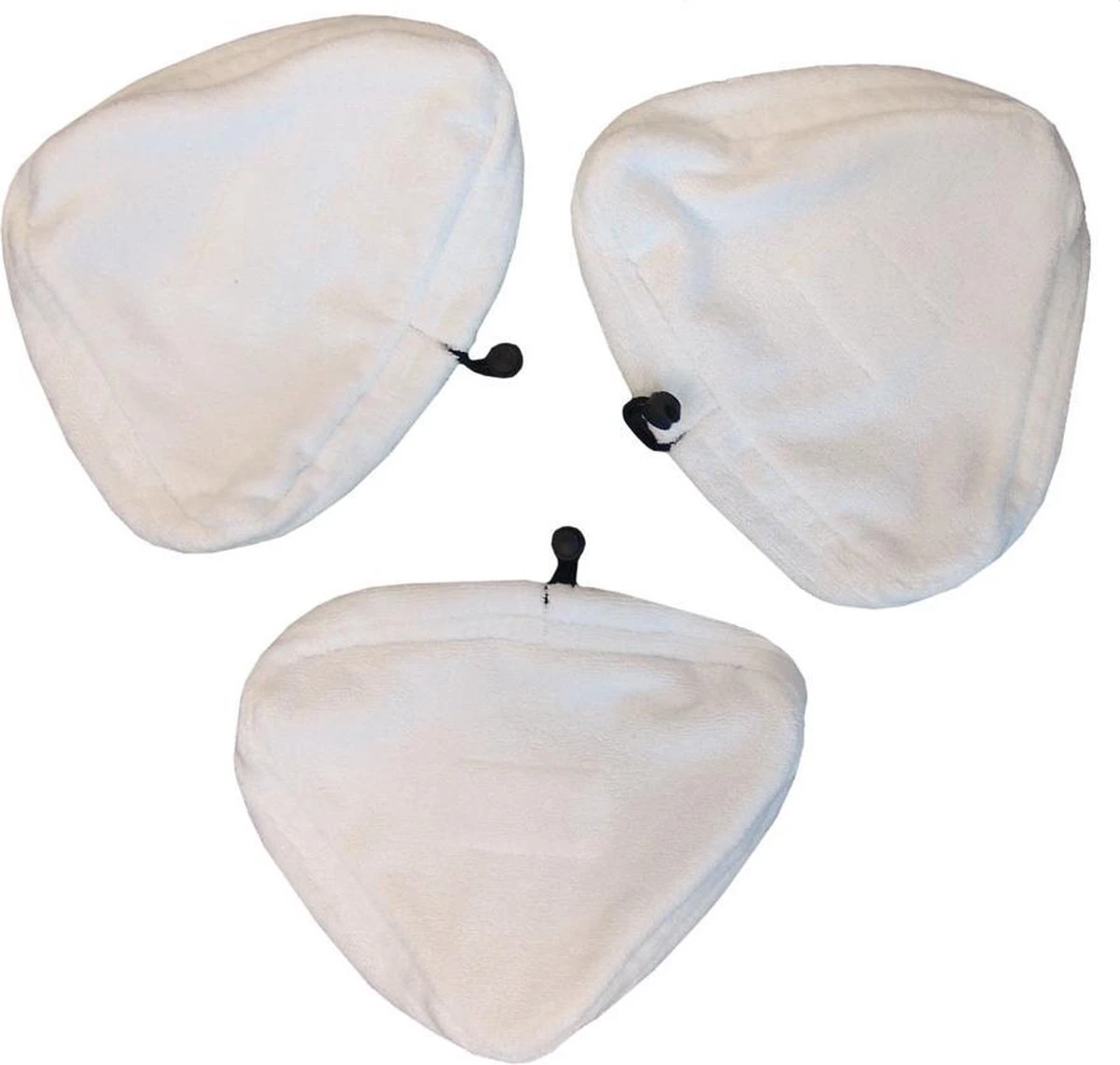 Je ziet tegenwoordig steeds meer stoomreinigers in de huishouding. Deze vloerdoek van microvezel past precies op de voet van de Aqua Laser stoomreiniger. Je trekt de doek strak om de voet van de stomer door middel van het koordje. Er zit een zakje in waar je eigen favoriete geur in kan. Dit is een set van drie doeken zodat je altijd een schone doek kunt gebruiken. Ze zijn wasbaar in de wasmachine, zonder wasverzachter, tot 60 graden. Voor het geval je wel een stoomreiniger hebt, maar niet van Aqua Laser, dit zijn de afmetingen: omtrek ca 85 cm, doorsnede over de lengte: ca 30 cm, doorsnede over de breedte: ca. 34 cm, zomen meegerekend.