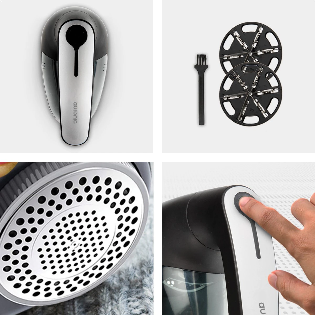De ontpluizer maakt je favoriete kledingstukken of meubilair in 3 minuten weer zo goed als nieuw. Draadloos. Van meubels tot dekbedden, door de 3 verschillende maasgrootten is de Auronic ontpluizer overal voor in te zetten. Makkelijk schoon te maken met het borsteltje en mee te nemen in de bijgevoegde opbergtas.