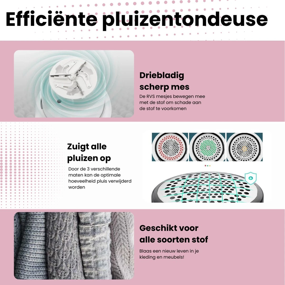 De pluizenverwijderaar is gemakkelijk in gebruik en kan worden gebruikt op verschillende soorten stoffen, waaronder kleding, meubels, gordijnen en tapijten. Met de krachtige motor en het roterende ontwerp van de messen worden pluisjes en haren snel en efficiënt verwijderd, waardoor je stoffen er weer als nieuw uitzien. Bovendien is het veilig en gemakkelijk te gebruiken, zonder dat je je zorgen hoeft te maken over beschadiging van je stoffen.