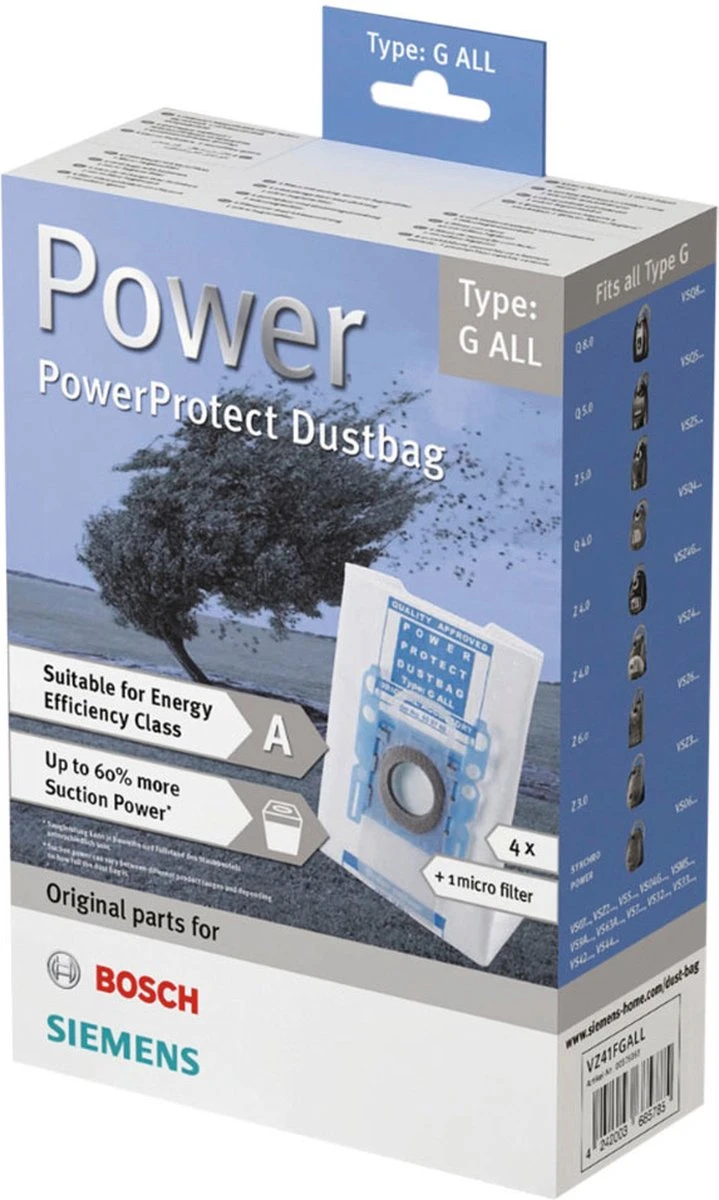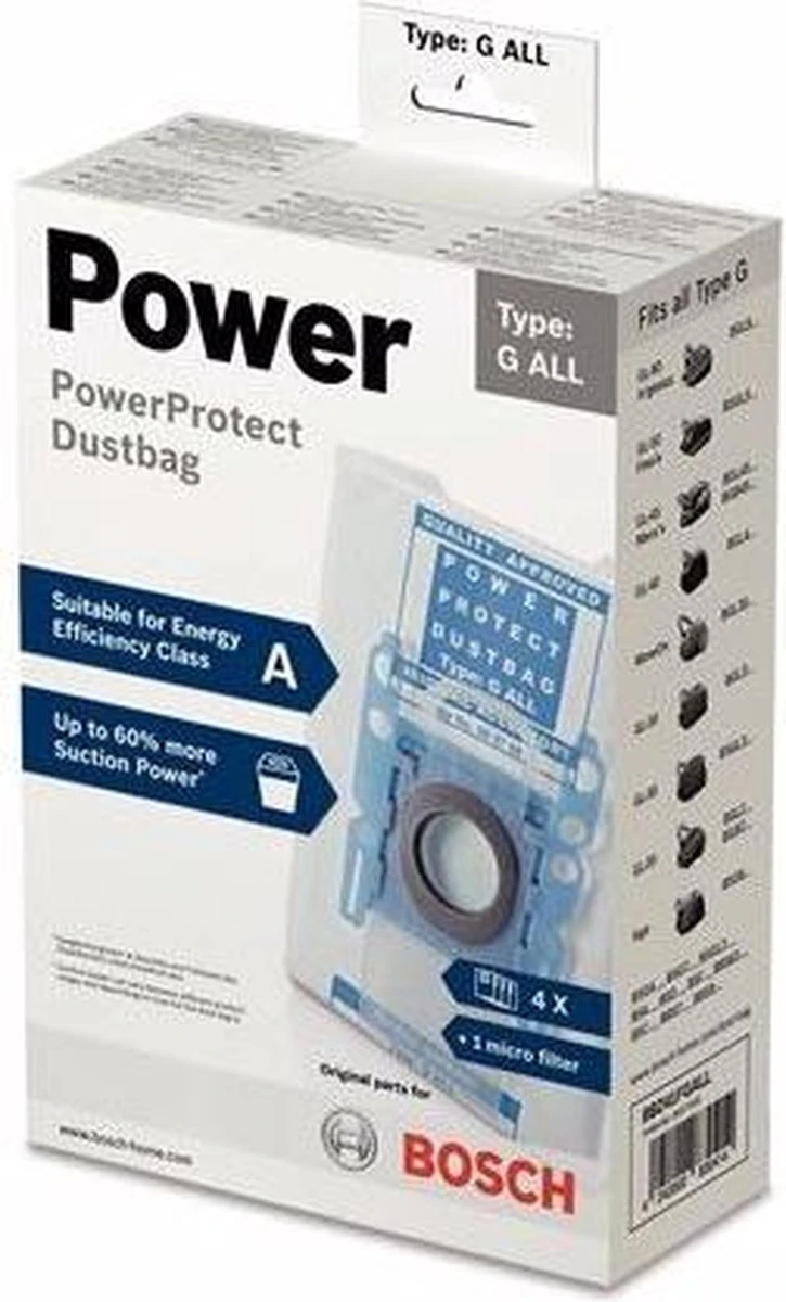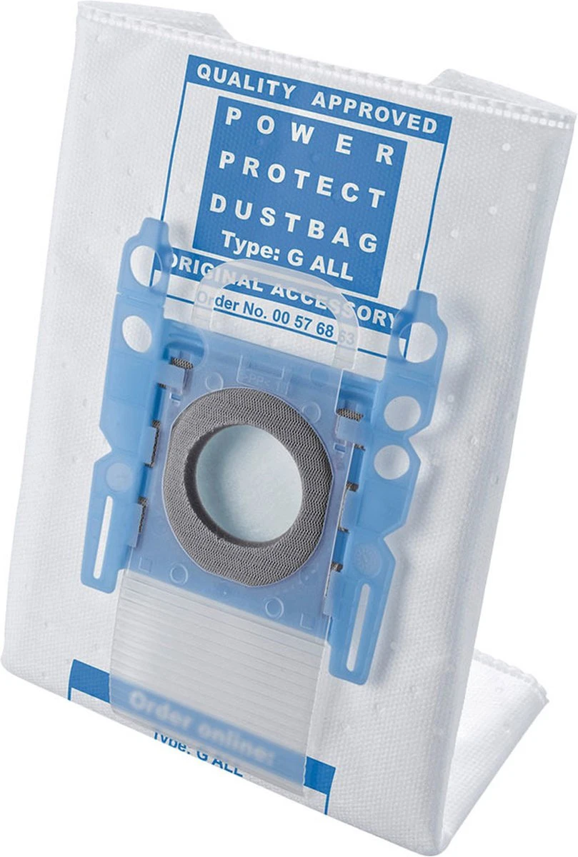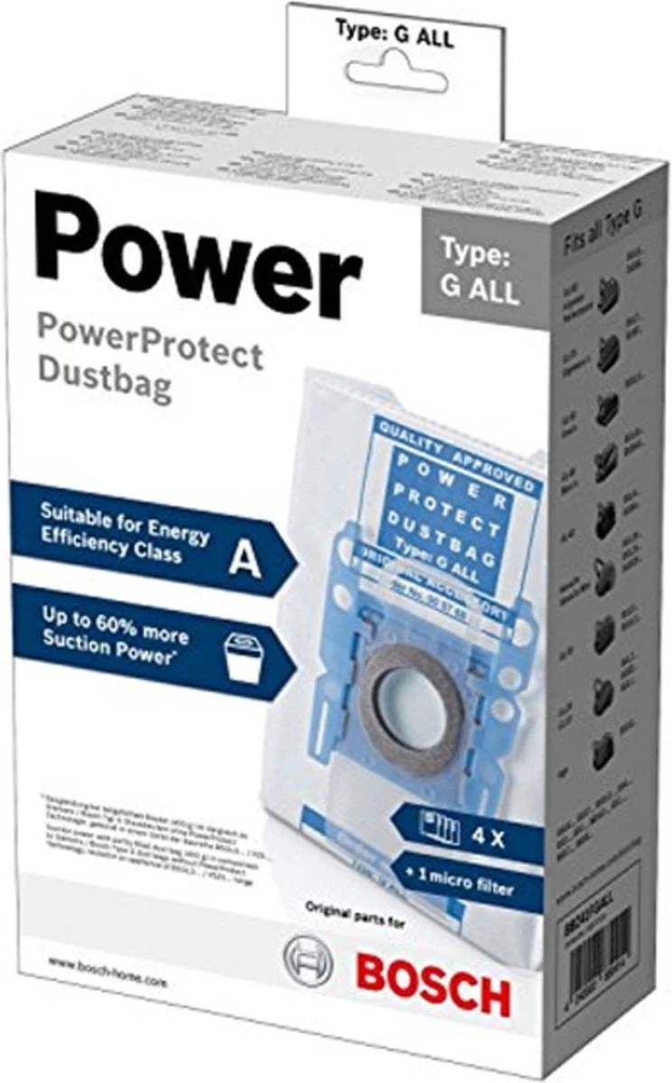 De nieuwe PowerProtect stofzuigerzak; hoge zuigkracht van stofzuigers met een laag wattage- ook als de stofzak vol raakt. Overtuigende hygiëne: filtratie van 99,9% van het fijne stof, evenals schone afvoer door hygiëneafdichting. Langere levensduur van de apparatuur: hoge stofretentiecapaciteit en bijpassende zaksluiting zorgen voor een efficiënte bescherming van de motor. Tot 50% langere levensduur: lagere stofzakverbruik door een hoge stofabsorptiecapaciteit.