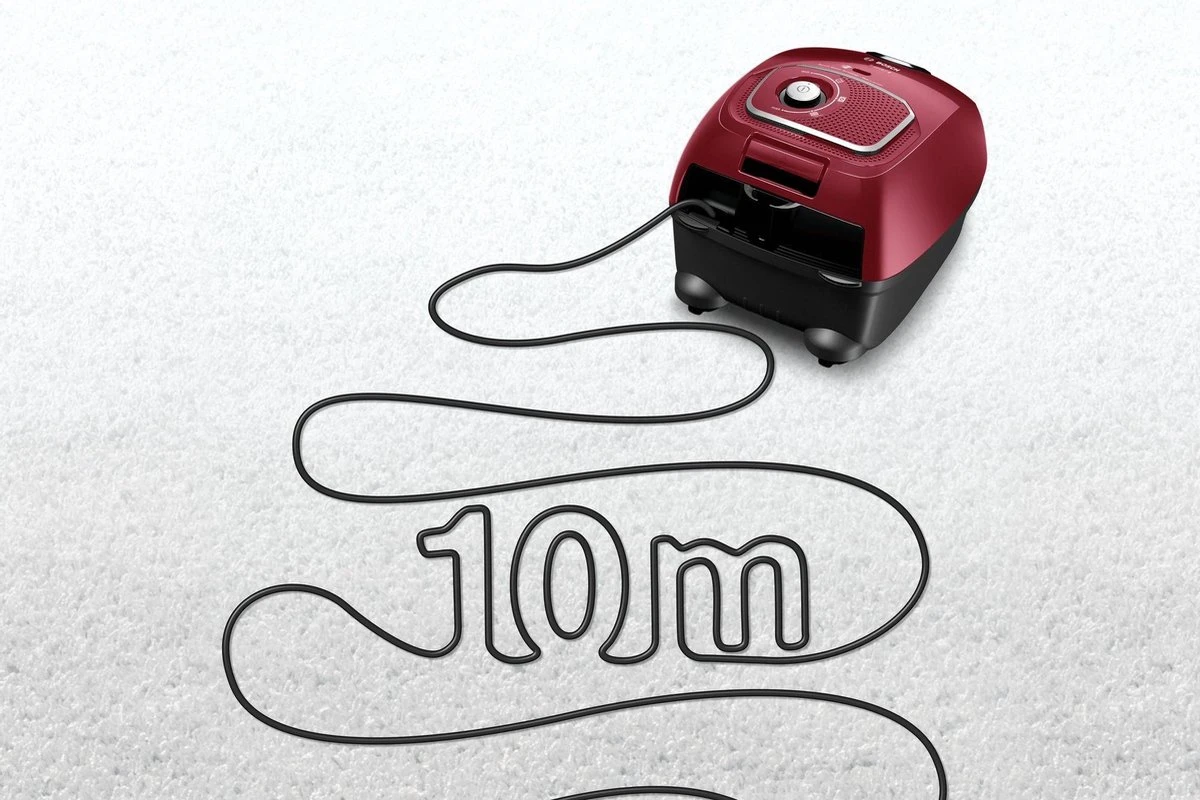 De ergonomische handgreep en een actieradius van 10 meter zorgen voor optimaal comfort tijdens het stofzuigen. En met de bijgeleverde accessoires kom je overal bij!