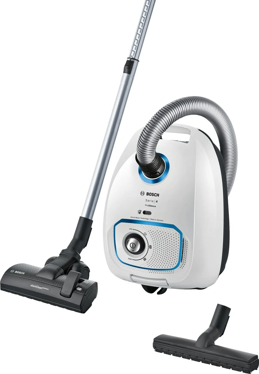 De Bosch ProSilence BGLS4SIL1 stofzuiger is geschikt wanneer het geluid van stofzuigen storend kan zijn. Even je huis stofzuigen terwijl je kind ligt te slapen, of de kruimels opzuigen terwijl er iemand televisie kijkt? Dat kan met de stille Bosch ProSilence BGLS4SIL1 stofzuiger. De Bosch ProSilence BGLS4SIL1 stofzuiger is voorzien van het SilentSound systeem, waardoor ze met een geluidsniveau van 66 dB hun werk doen. Alle onderdelen van borstel tot motor zijn zo ontworpen dat je elke vloersoort geruisloos grondig schoon kunt maken, zonder dat anderen daar last van hebben. Bij deze stofzuiger wordt een omschakelbaar zuigmondstuk geleverd, zodat je op meerdere oppervlakte kan stofzuigen.