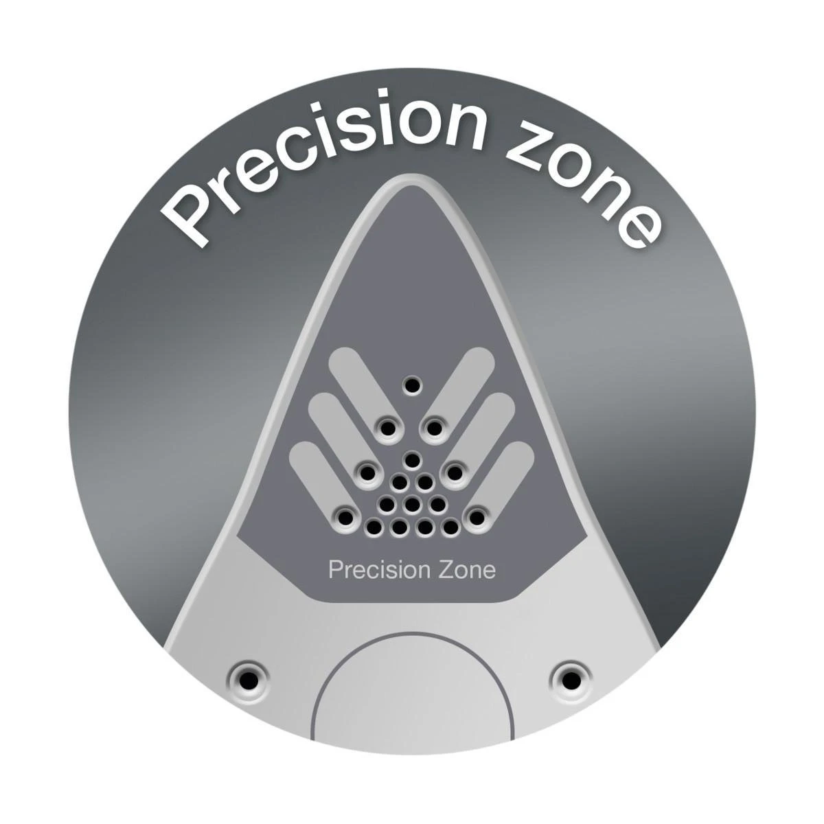 De driehoekige stoomzone in de punt van dit strijkijzer maakt het strijken van moeilijk te bereiken plekken, zoals kragen en naden, zeer eenvoudig.