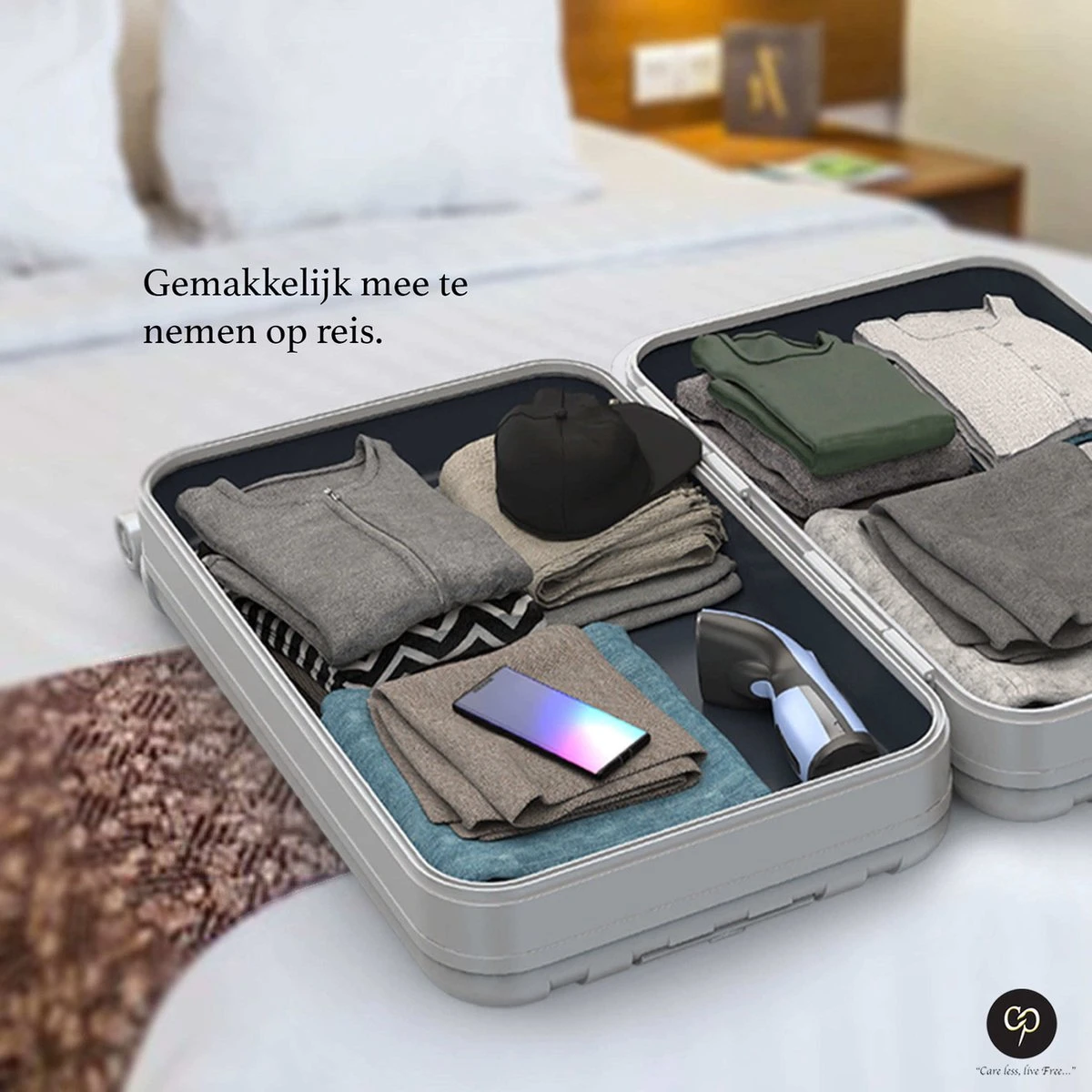 Dankzij het lichte gewicht en het compacte design is de Carefree kledingstomer ideaal om op te bergen en overal mee naar toe te nemen. Geen zorgen meer als u op vakantie bent en uw favoriete overhemd is niet goed glad gestreken, want dankzij de kledingstomer is dit binnen enkele minuten gefixt.