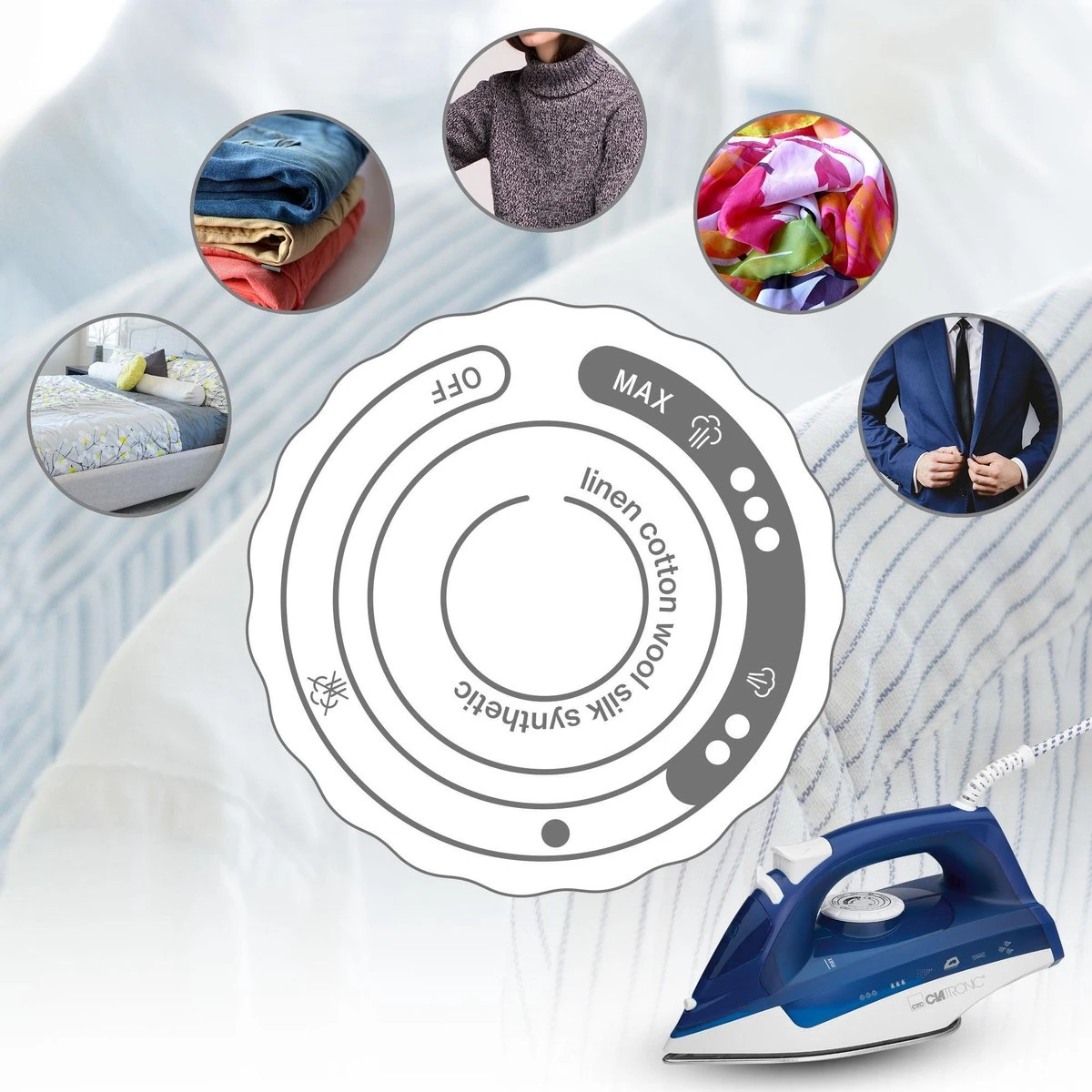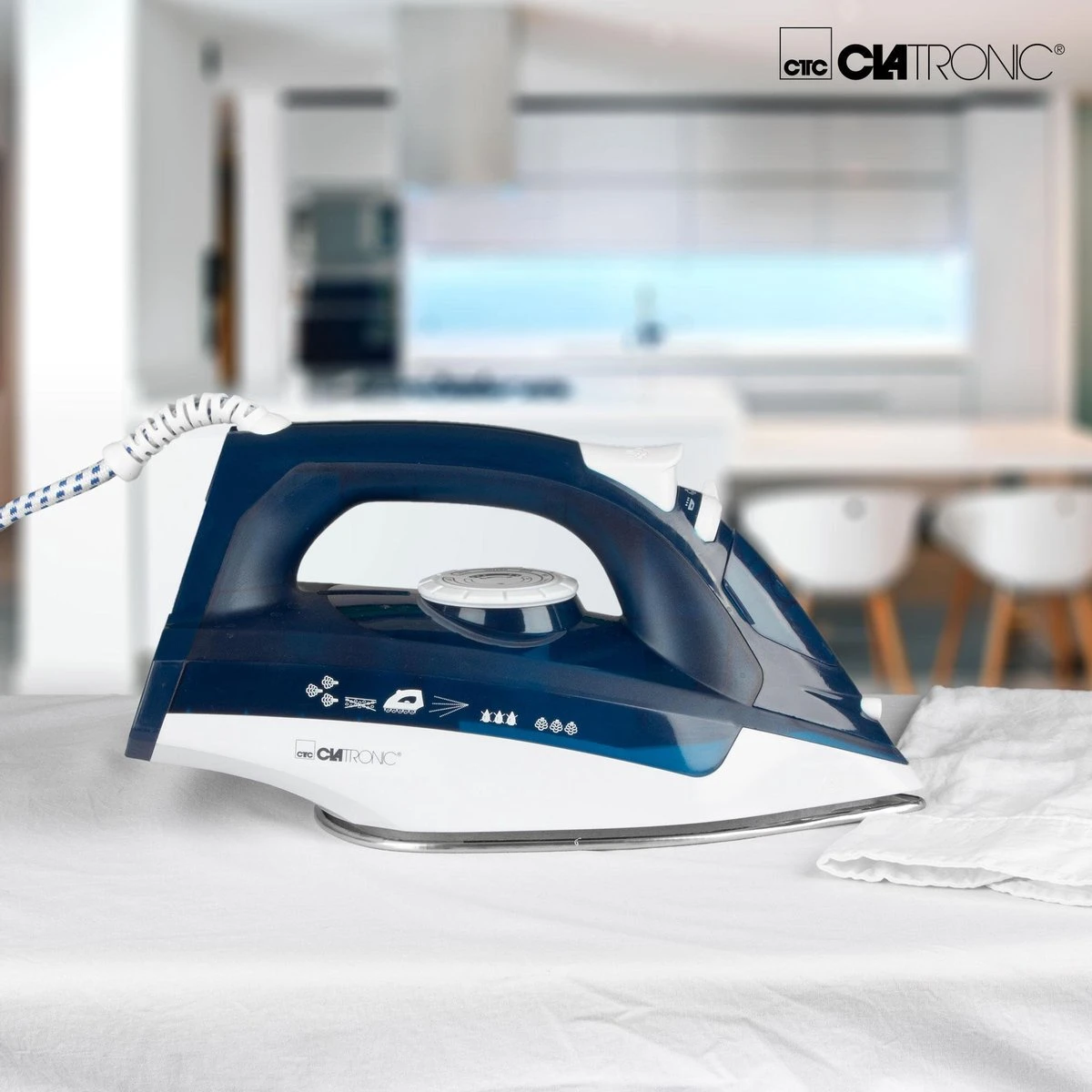 De roestvrijstalen speciale zool van Clatronic verwarmt snel en garandeert een ideaal resultaat op verschillende stoffen zoals katoen, linnen, synthetische of wol.