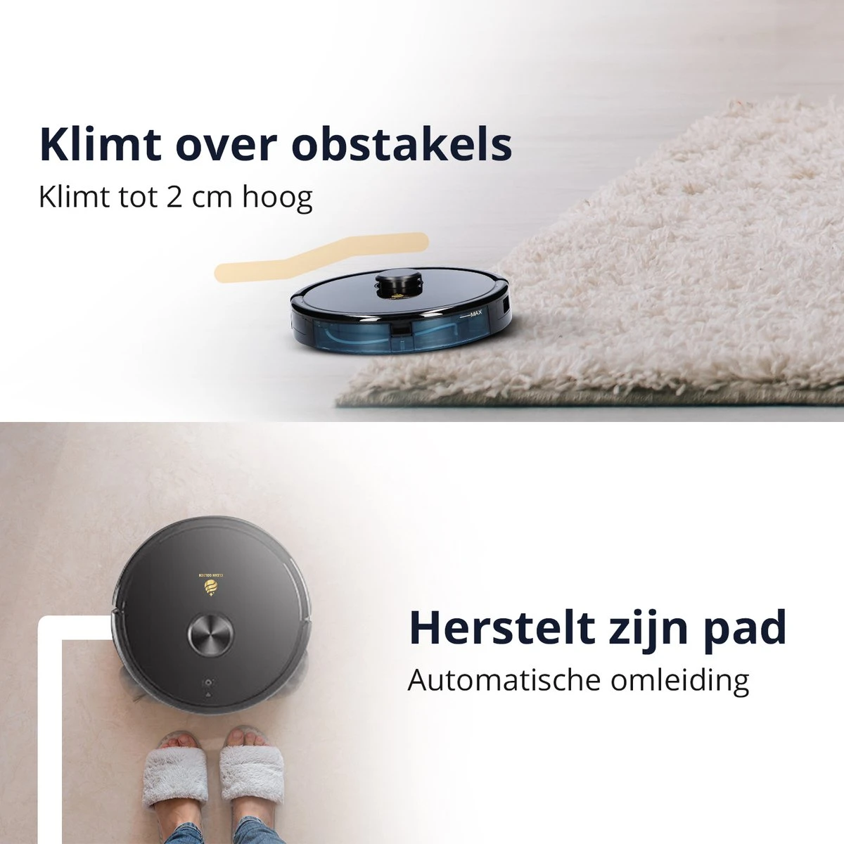 Met een ingebouwde veger & dweilfunctie krijgt onze robotstofzuiger jouw vloer 100% schoon. Zak lekker onderuit en laat alles over aan de robotstofzuiger.