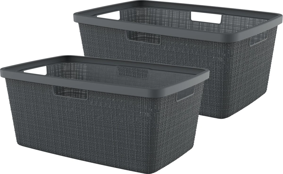 - Curver Jute Heupwasmand 46L – 2 stuks – Donkergrijs
