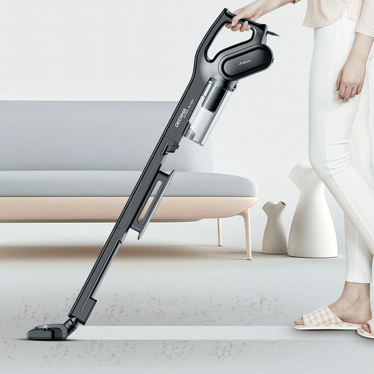 Het eenvoudige, minimalistische ontwerp van de stofzuiger maakt hem niet alleen praktisch, maar ook een stijlvolle toevoeging aan je huis. De universele grijze kleur van het toestel zal perfect passen in het karakter van elk interieur. De mogelijkheid van verticale opslag zal ook ruimte besparen. Dit alles maakt de Deerma DX 700 ook voor uw huis de perfecte keuze.