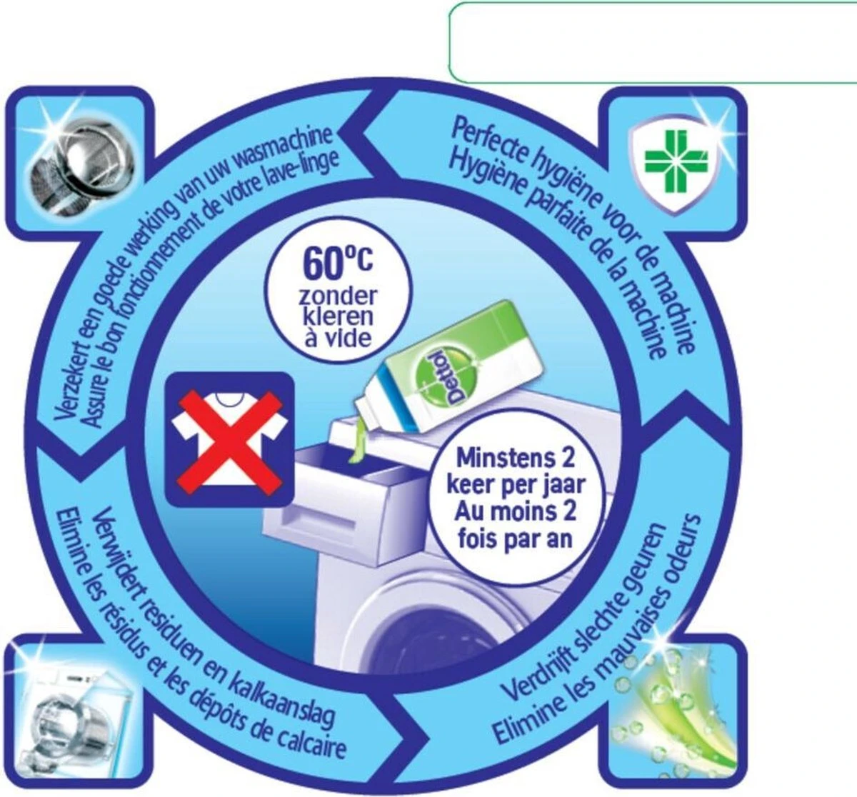 De Dettol Wasmachine Reiniger zorgt ervoor dat uw wasmachine weer in perfecte staat is om te wassen. Door elke keer te wassen blijven steeds meer residuen achter in uw machine wat leidt tot meer geur- en vuilrestanten op uw was. De reiniger maakt het mogelijk dat deze geur- en vuilrestanten verwijderd worden en u weer een frisse hygiënische wasmachine ervaart.