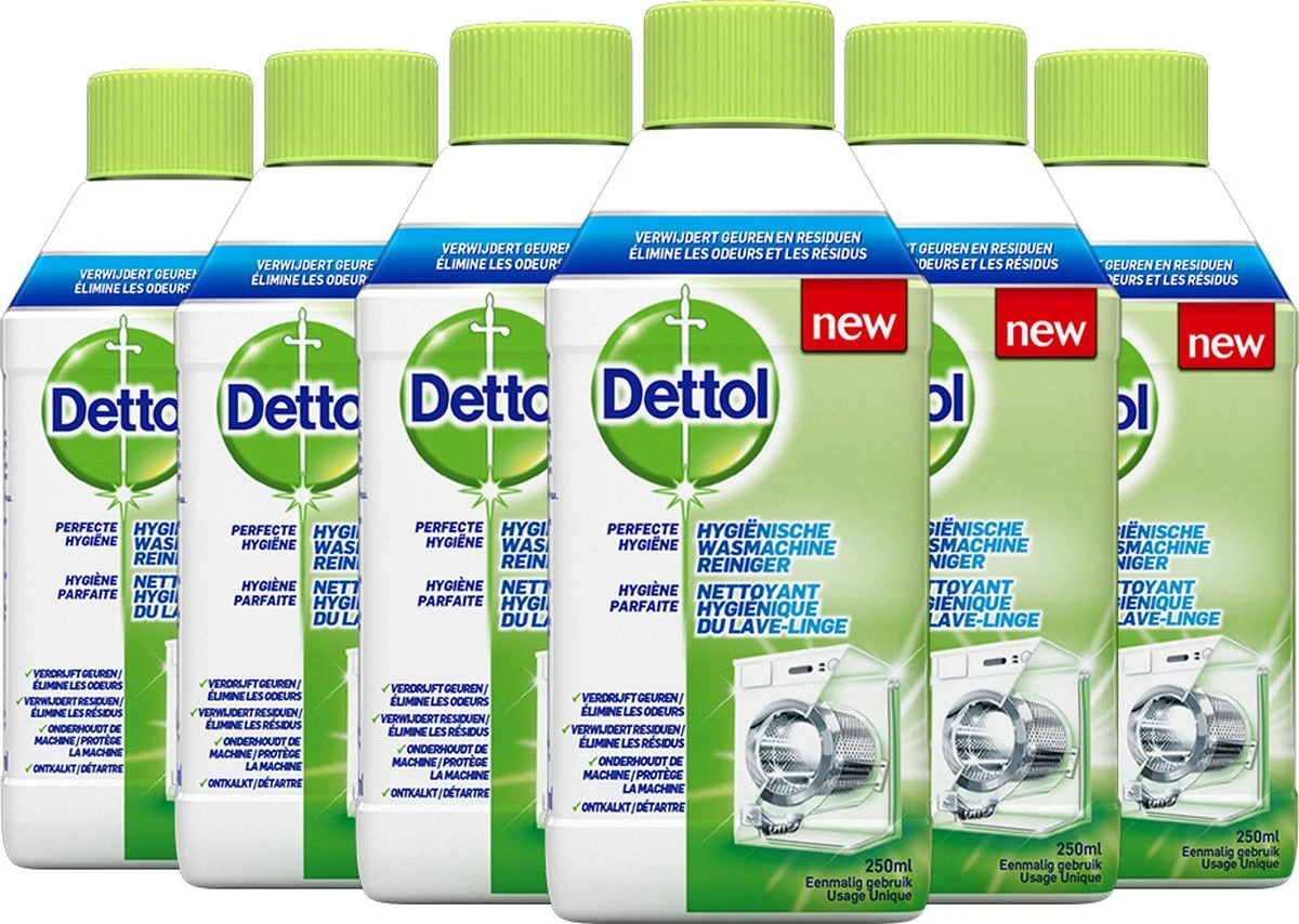 De Dettol Wasmachine Reiniger zorgt ervoor dat uw wasmachine weer in perfecte staat is om te wassen. Door elke keer te wassen blijven steeds meer residuen achter in uw machine wat leidt tot meer geur- en vuilrestanten op uw was. De reiniger maakt het mogelijk dat deze geur- en vuilrestanten verwijderd worden en u weer een frisse hygiënische wasmachine ervaart. Dit is een grootverpakking en bevat 6x 250ml.