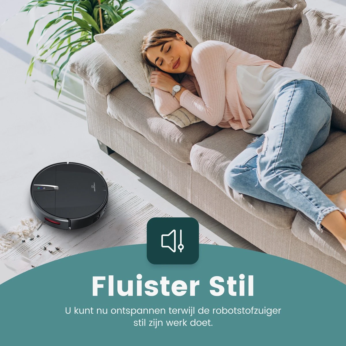 Haal hem uit de verpakking, sluit deze aan bij een laag stopcontact en je bent al bijna klaar! Druk met de afstandsbediening op start of stel gemakkelijk jouw gewenste schoonmaaktijden in en de Dweil-robotstofzuiger zal al het zware werk voor je doen!