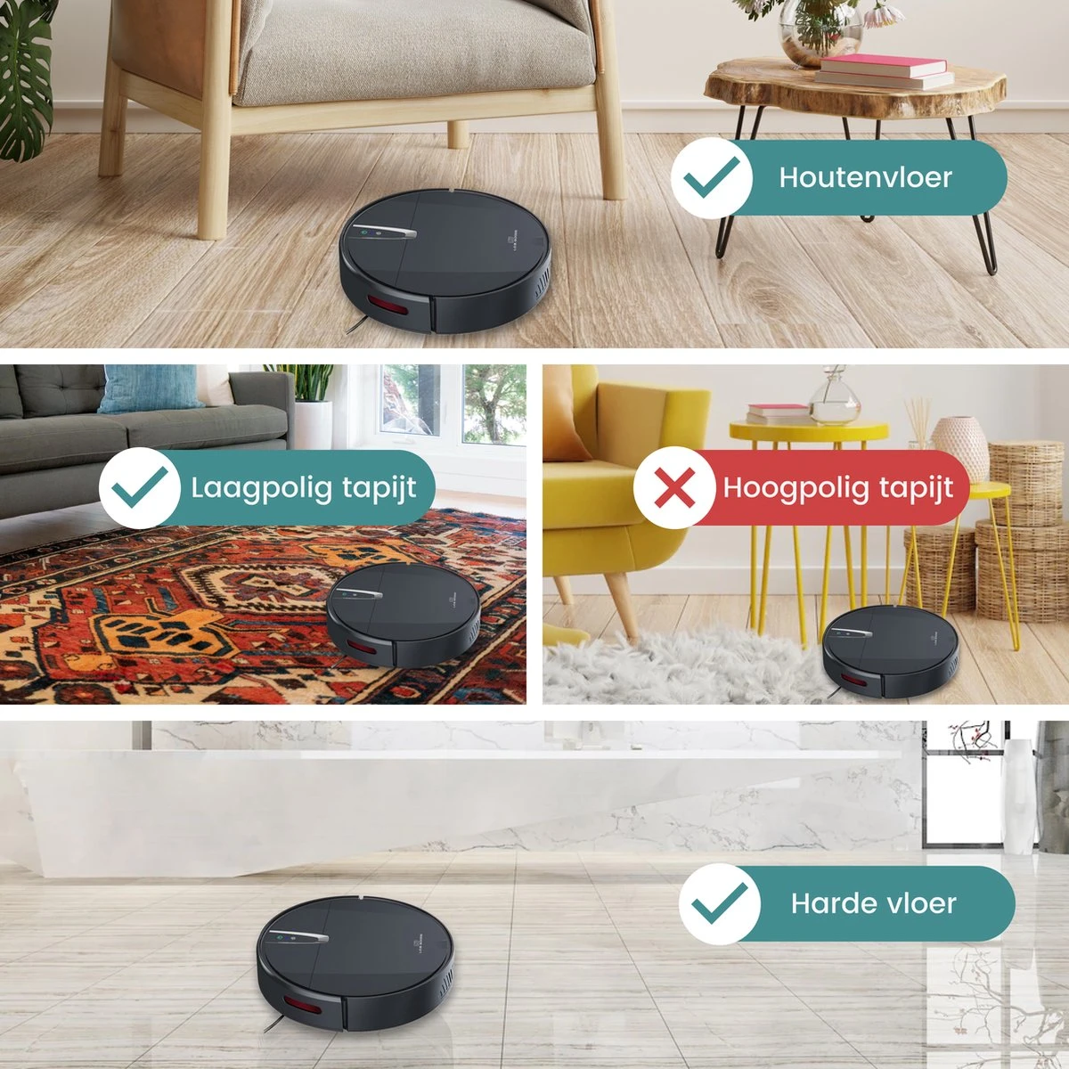 - Geschikt voor vrijwel alle ondergronden. (Laminaat, tegels, tapijt, etc.)