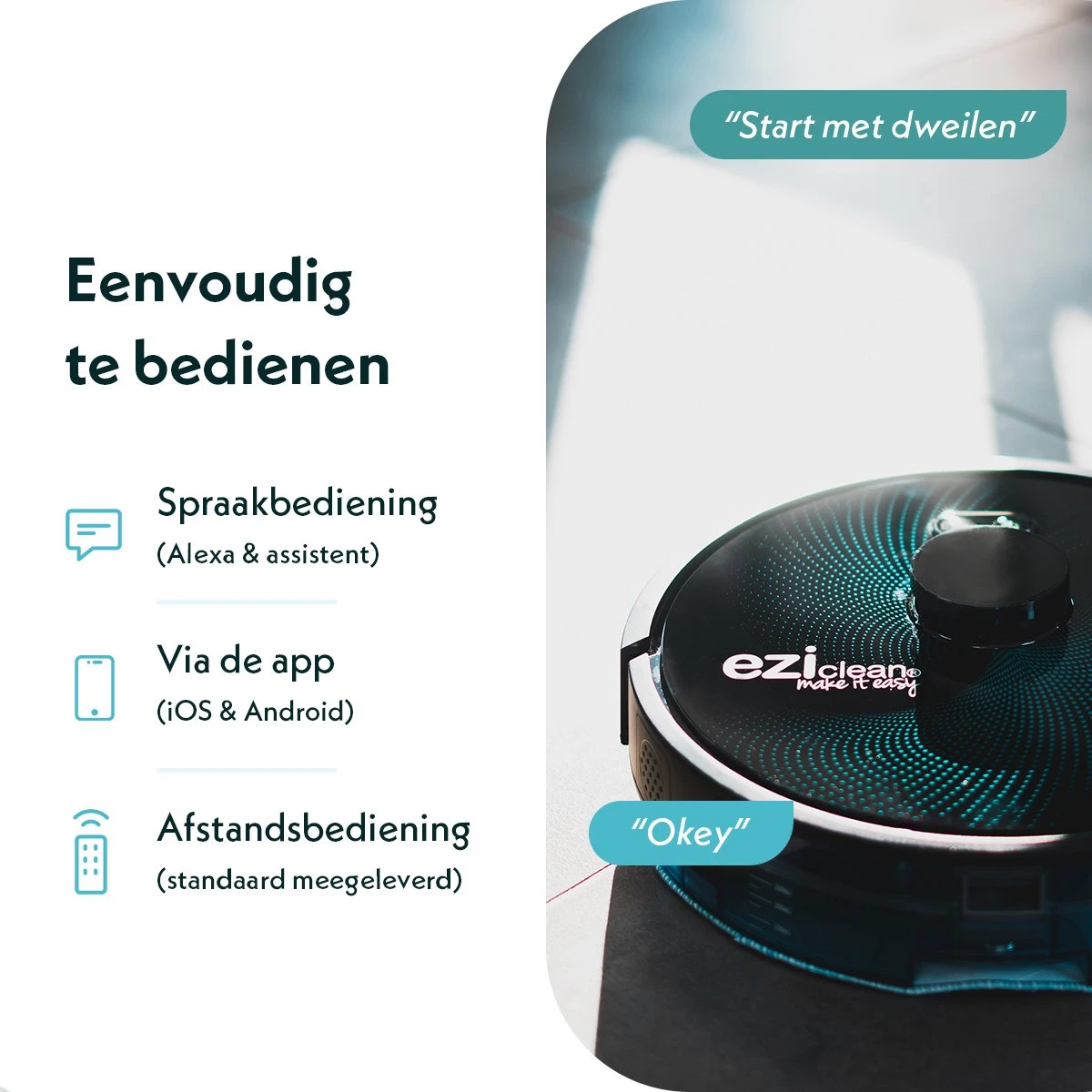 robotstofzuiger met dweilfunctie hoef jij je hier geen zorgen meer over te maken. Laat jouw vloer stofzuigen en dweilen tegelijkertijd. Dit zorgt voor een optimale diepe reiniging van jouw huis. De navigatietechnologie brengt jouw interieur in kaart, waarbij je in real-time kan volgen welke ruimtes al schoongemaakt zijn. Bedien de robotstofzuiger via spraakbesturing, zodat je zelfs niet meer hoeft te stoppen met jouw activiteiten.