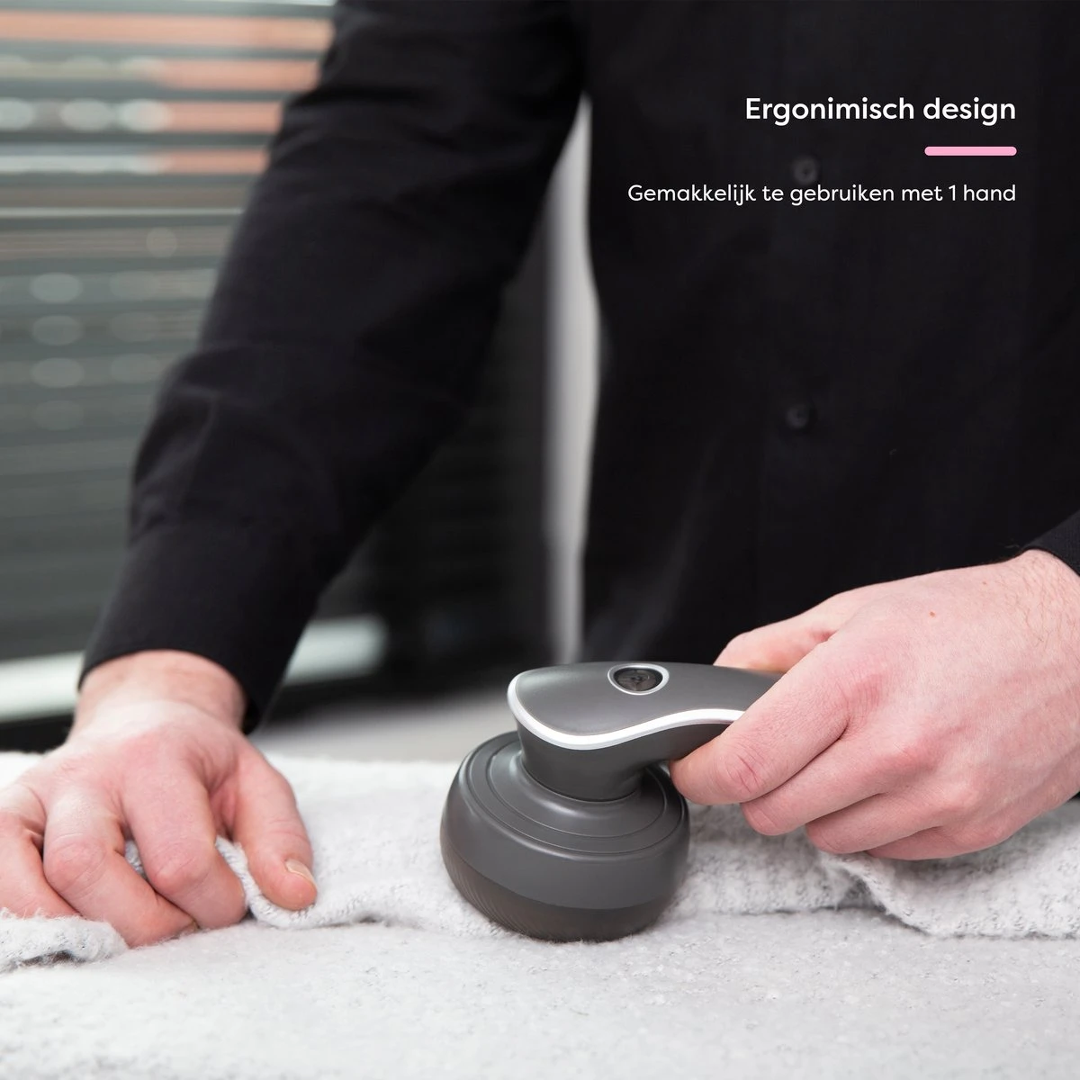 Het ergonomisch design van onze pluizenverwijderaar is ontworpen voor comfortabel en langdurig gebruik. Het handvat is ergonomisch gevormd en ligt perfect in de hand, waardoor het apparaat prettig en veilig is om vast te houden tijdens het gebruik.