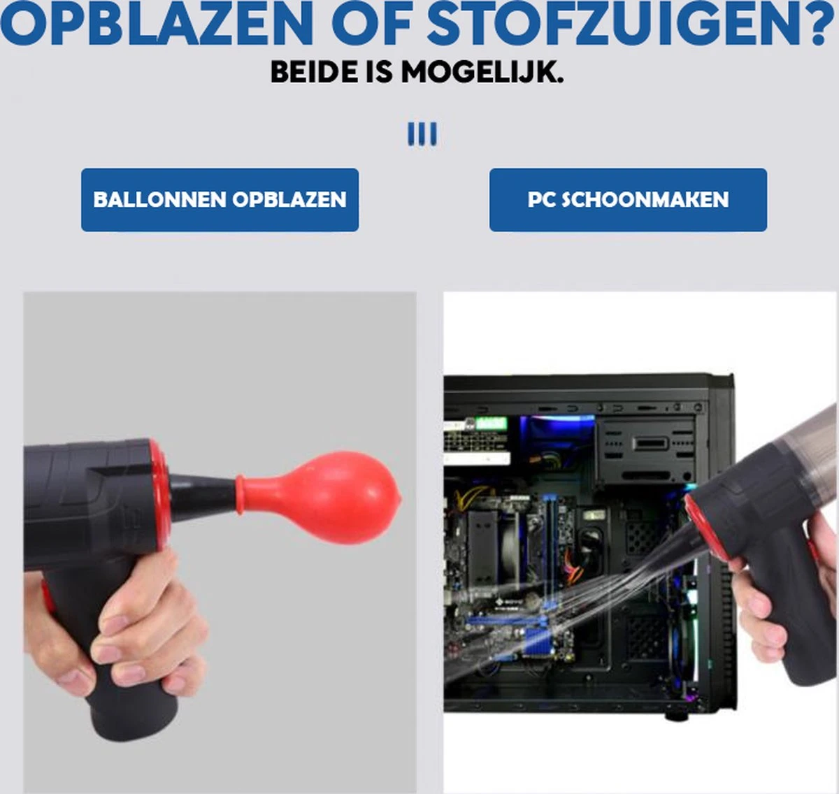 Mobiel en eenvoudig te gebruiken: geen beperkingen door een snoer, wat het gemakkelijker maakt om op moeilijk bereikbare plekken schoon te maken.