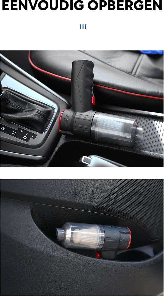 Een draadloze stofzuiger is zeer handig bij het schoonmaken van een auto, omdat het geen beperkingen heeft door een snoer. Een draadloze stofzuiger is handig omdat het geen snoer heeft en gemakkelijk in gebruik is, wat het ideaal maakt voor een snelle opruimbeurt van een auto. De stofzuiger komt met een spleet- en borstelmondstuk zodat je zelfs de moeilijkst bereikbare plekken in je auto kunt bereiken. Je steekt de stekker met zekering simpelweg in een 12V aansteker aansluiting en dankzij de kabel van ruim 3 meter kun je vervolgens gemakkelijk door de hele auto manoevreren. Het interne filter in de auto stofzuiger maakt het mogelijk om zowel droog als nat stof te zuigen.