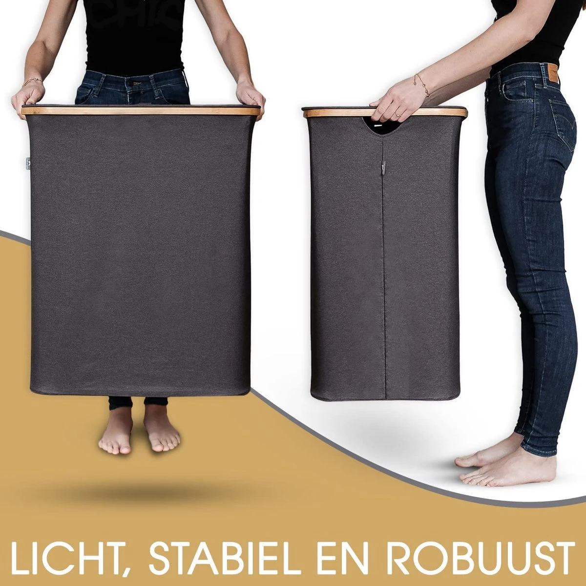 - Deze wasmand ziet er modern en elegant uit dankzij het stoffen ontwerp met bamboe – absolute stijlvolle blikvanger in de badkamer, slaapkamer, kinderkamer of woonkamer. Een blikvanger met grote opbergdoos.