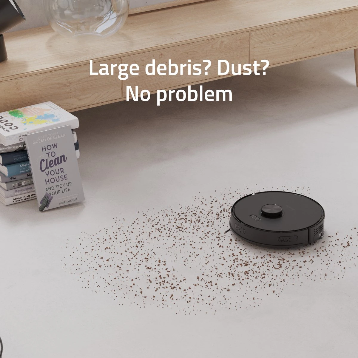 De Smart Robot Vacuum bevat een vervangbaar HEPA-filter, dat ervoor zorgt dat er geen schadelijke deeltjes in je huis terechtkomen.