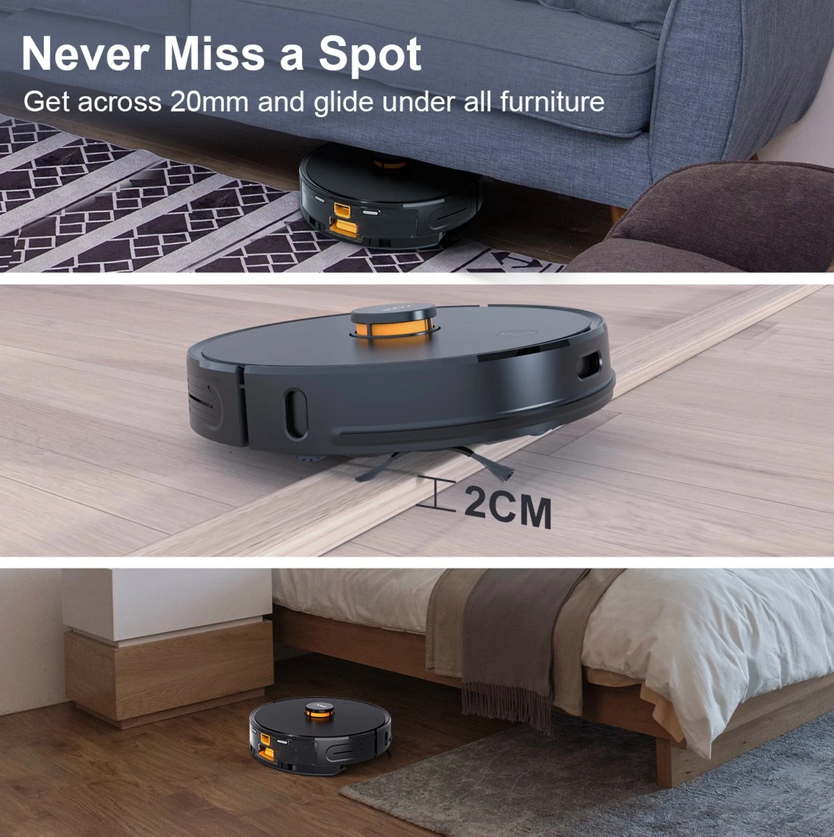 De Imou robotstofzuiger is het ideale schoonmaakhulpje in huis. Deze robot zuigt niet alleen alle stof op, maar zorgt ervoor dat uw vloer ook glimt met de dweilfunctie. Indien u ook Imou slimme camera’s bezit is het ook goed om te weten dat deze robot in dezelfde app bediend wordt. In de Imou Life app vindt u veel slimme functies die ervoor zorgen dat de robot precies werkt zoals gewenst. Dankzij Lidar zal de robot binnen een paar minuten de ruimte in kaart brengen, waarbij u de mogelijkheid krijgt om kamers in te stellen.