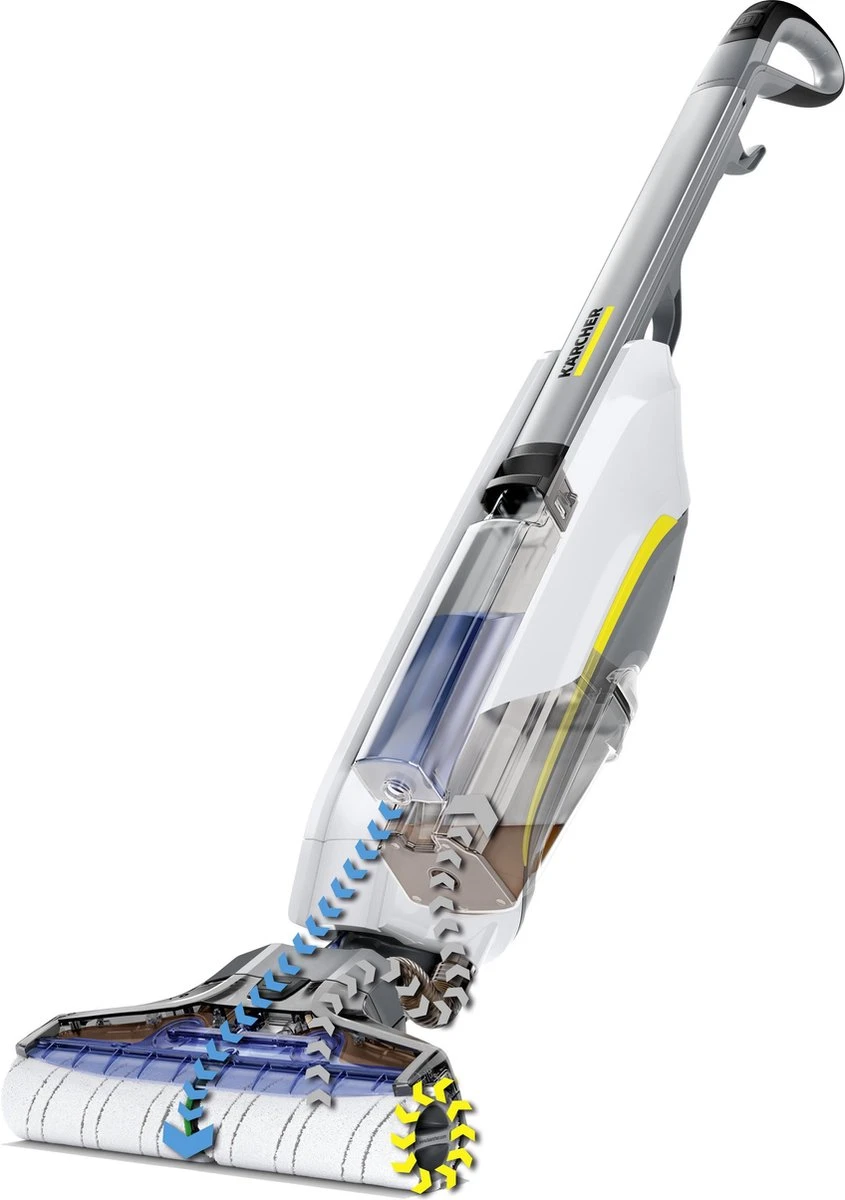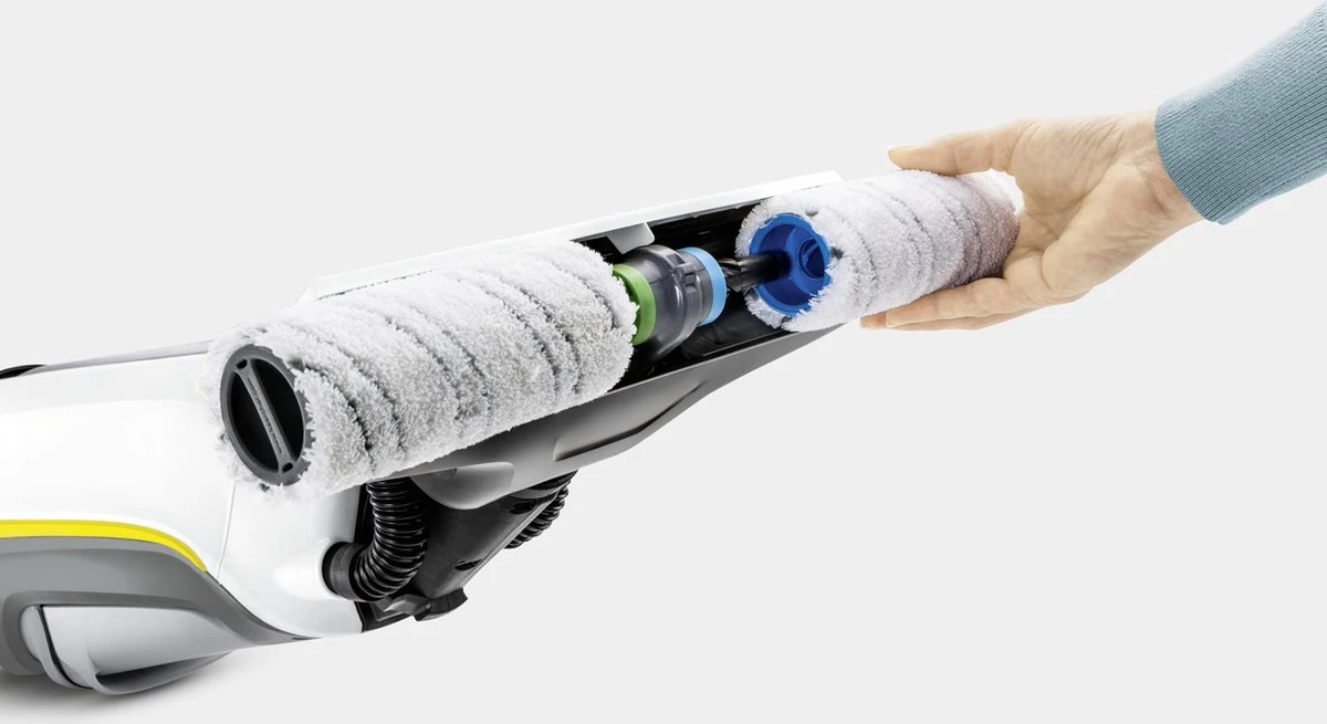 Eindelijk moeiteloos dweilen zonder tijdrovend vooraf zuigen: de Floor Cleaner FC 5 Premium maakt het mogelijk. Dankzij de praktische 2-in-1-functie kan vochtig en droog vuil in één keer worden opgedweild en afgezogen. De roterende en automatisch bevochtigde walsborstels van microvezel blijven altijd schoon en geschikt voor gebruik doordat de zelfreinigende functie het opgenomen mengsel van vuil en water continu van de walsrollen afzuigt. De Premium-uitvoering wordt bovendien geleverd met een reservepaar walsborstels, 500 milliliter universele reiniger en een proefflacon met 30 milliliter reinigingsmiddel voor houten vloeren. De FC 5 bespaart bovendien in vergelijking met traditionele methoden tot 85 procent water en levert een aanzienlijk betere reinigingsprestatie. De FC 5 kan worden gebruikt op elke harde vloer van hout, steen of kunststof. Inclusief 2-delige microvezelrollerset voor zachte reiniging en verzorging van alle harde vloeren. Pluisvrij, absorberend en slijtvast. Geschikt voor de wasmachine tot 60 ° C.