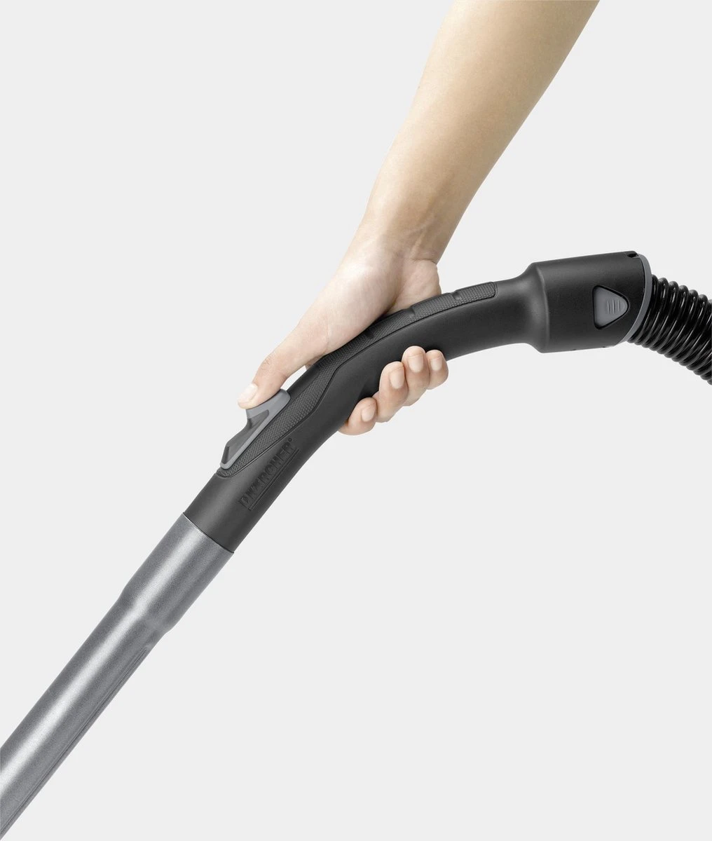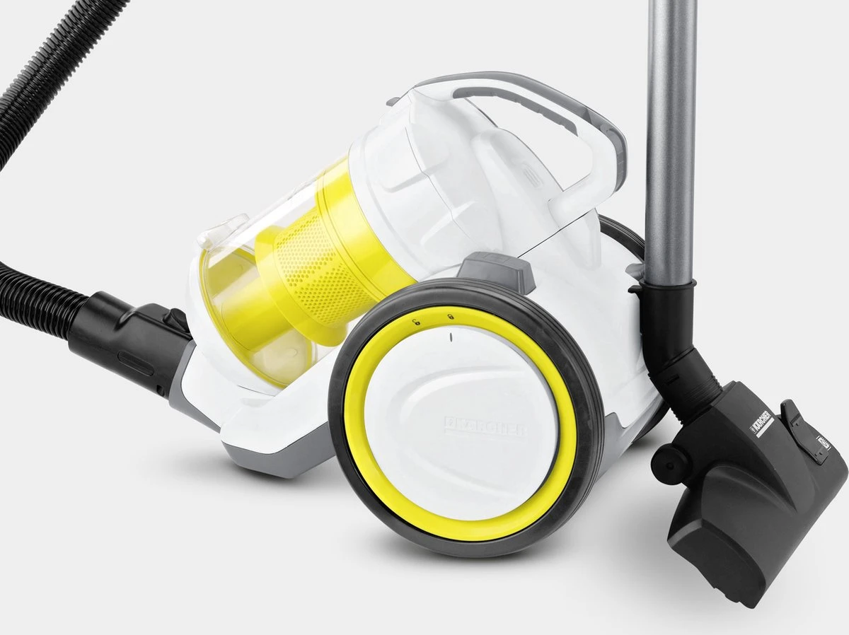 De VC 3 is een multi-cyclone Kärcher stofzuiger zonder stofzak die krachtige reinigingsprestaties combineert met een functioneel design. Hij levert grote prestaties zonder zuigkracht te verliezen en dankzij het uitwasbare vuilreservoir bespaart hij u ook flink wat geld dat u anders zou moeten besteden aan het kopen van reserve stofzakken. Dankzij zijn handige afmetingen, past de witte VC 3 perfect in het moderne huishouden. Nog enkele andere voordelen zijn het doorzichtige vuilreservoir voor een betere prestatiecontrole, een HEPA 13-Filter met minimale stofuitstoot en een uiterst laag geluidsniveau. De zeer efficiënte VC 3 is eenvoudig te bedienen door jong en oud en is ideaal voor een grondige reiniging van zowel vloeren en tapijten als spleten, hoeken en kanten en andere moeilijk bereikbare plaatsen.