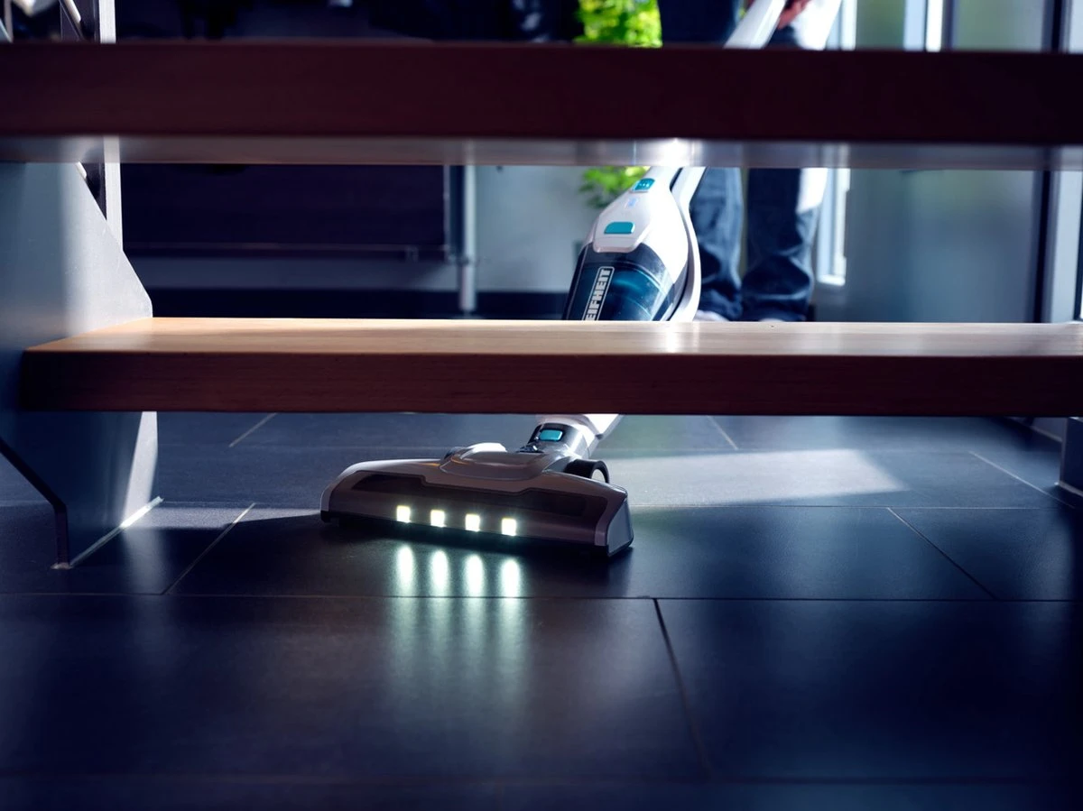 - Vier front-leds maken het vuil ook in donkere hoekjes en onder meubels goed zichtbaar