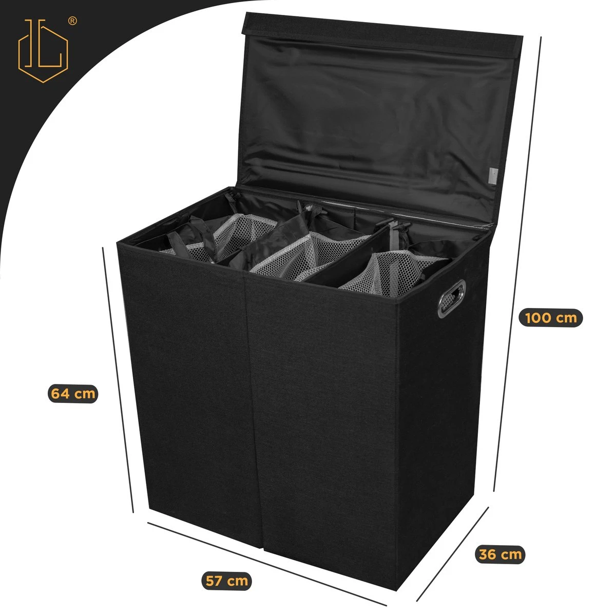 â–¶ 3 ruime, apart verwijderbare zakken van elk 40 liter: sorteer je was en zie meteen of je genoeg vuile was hebt om een witte, donkere of gekleurde was te laten draaien.