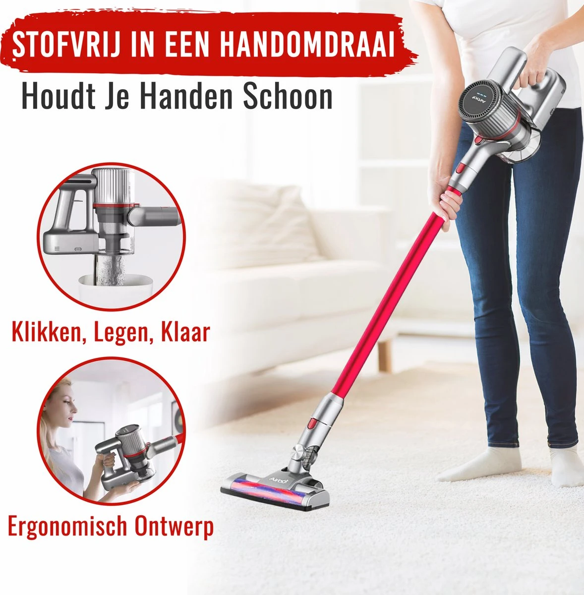 Bij het schoonmaken van meubilair is het onhandig om telkens een lange steel te moeten gebruiken. Hierdoor hebben wij de stofzuiger zo ontworpen dat je het eveneens kan gebruiken als zijnde kruimelzuiger. Dit is ontzettend handig als je snel kruimels van de vloer of huisdier haren van de bank wilt zuigen. Daarnaast ontvang je bij aankoop een harde- en zachte borstel, waardoor je tapijt, harde vloeren en stoelpoten moeiteloos kan reinigen.