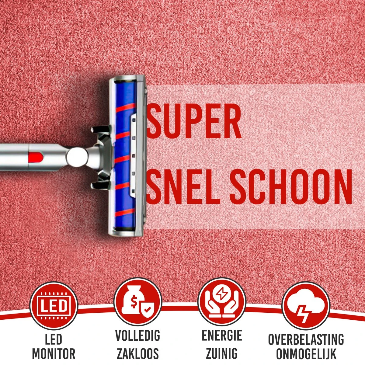 - Uitgerust met een sterke ingebouwde 200W motor (op de hoogste stand) en 16-21 kpa zuigkracht