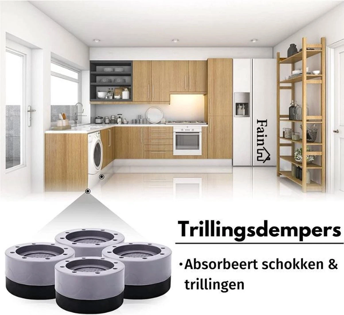 Deze ultra dikke geluidsdempers zijn gemaakt van hoogwaardig rubber. Daarbij hebben de dempers een diameter van 8 cm wat zorgt voor voldoende steun per kant. Verder worden de trillingen van bijvoorbeeld de wasmachine geabsorbeerd door de rubberen trillingdempers. Dit zorgt ervoor dat niemand zich hoeft te storen als je gebruik maakt van jouw wasmachine of droger.