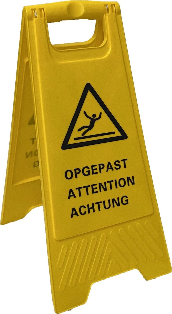 Met het meegeleverde waarschuwingsbord attendeert u gasten op de gladde vloer. Vaak is dit verplicht op uiteenlopende locaties.