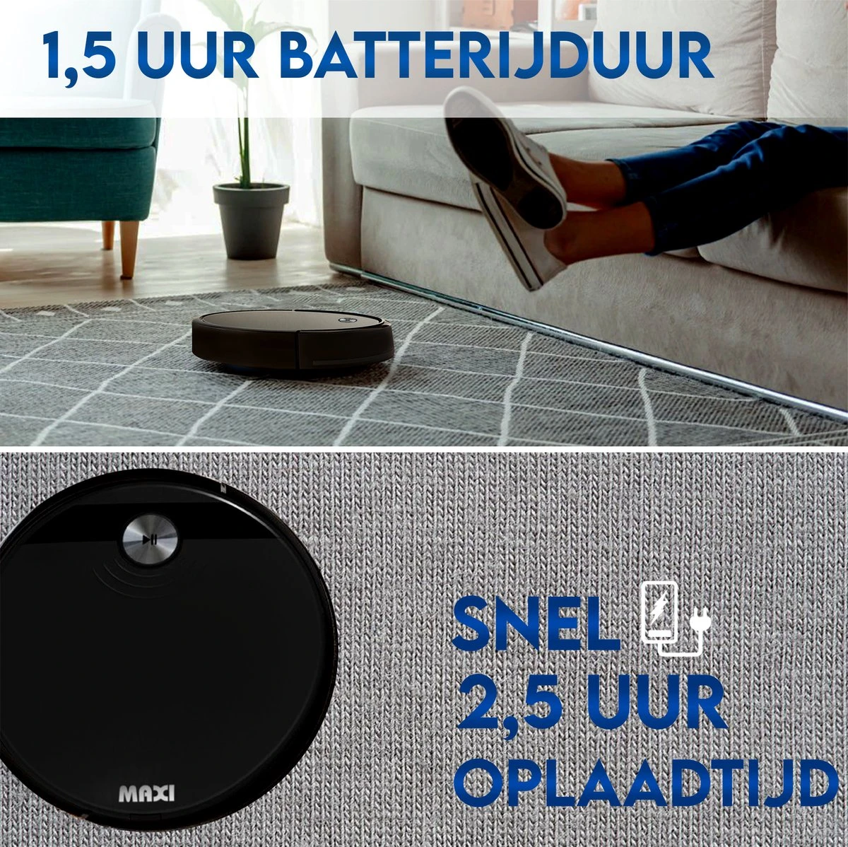 De Maxi Smart Robotstofzuiger is enkel beschikbaar in de kleur SpaceGray. Deze robotstofzuiger met dweilfunctie zorgt ervoor dat jouw vloeren in huis worden gestofzuigd, gedweild, gedroogd en geborsteld.Terwijl jij wat anders doet. Heb je huisdieren of tapijt in huis? Geen probleem. De zuigmond met ronddraaiende borstel en de twee zijborstels rekenen daar grondig mee af. Ben je gevoelig voor stof, dan is dit ook een goede hulp in huis. Want met het speciale HEPA-filter in deze robotstofzuiger is deze robot ook geschikt voor mensen met een stofallergie. Mag de stofzuigrobot ergens niet komen in huis? Plaats dan de meegeleverde magneetstrip om de robot tegen te houden. Geen omkijken meer naar!