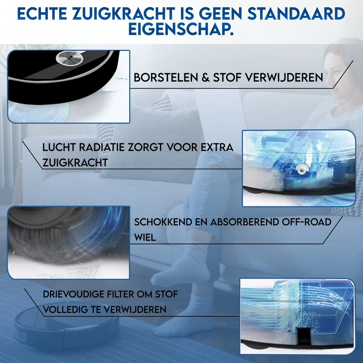 Door de Gyroscoop navigatie kan de Maxi Smart Robotstofzuiger in een efficiënte en nauwkeurige zigzag beweging je hele huis schoonmaken. Zo worden er geen plekken overgeslagen en wordt je gehele vloer schoon.