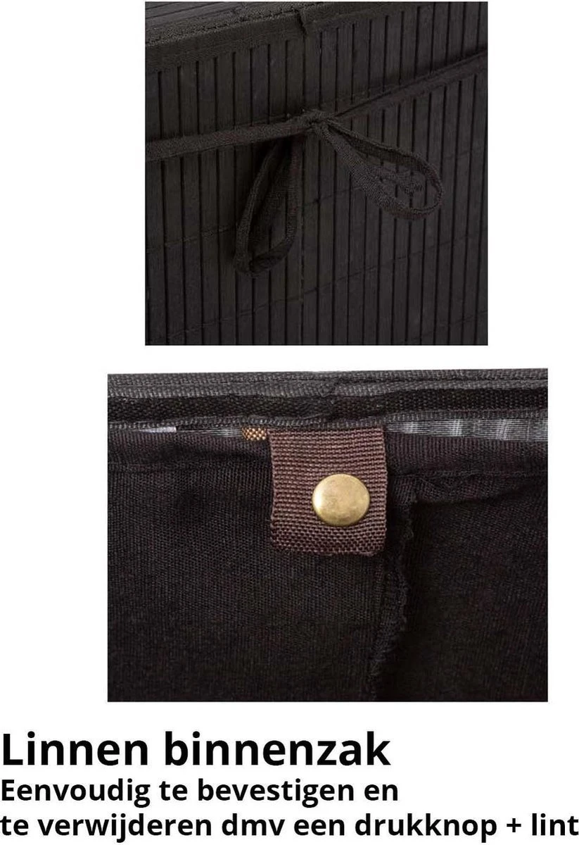 U kunt tot 60 liter wasgoed in de wasmand opbergen. De wasmand is gemaakt van bamboe.