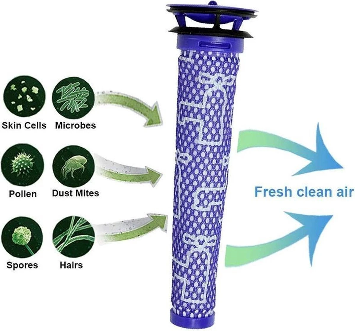 Wasbaar pre-motor filter voor de Dyson DC58, DC59, DC61, DC62, DC72, DC74, V6, V7 en V8 serie stofzuigers. We raden aan het filter minstens één keer per maand te wassen met koud water zonder afwasmiddel. Laat het filter volledig drogen voordat u het vervangt, wat ten minste 24 uur kan duren. Vervangt Dyson artikelnummer(s): 965661-01.