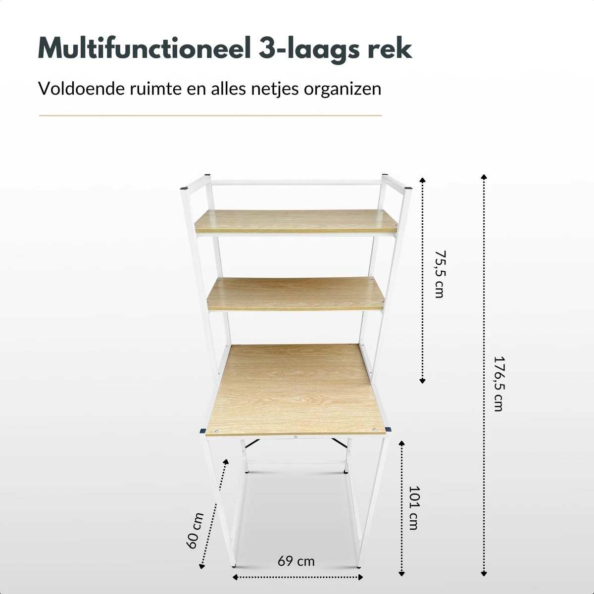 Deze wasmachine ombouw is geschikt voor wasmachines met een maximale hoogte van 97,5 cm en breedte van 64,5 cm. De afmetingen van het gehele rek zijn 176,5 cm hoog, 69 cm breed en 60 cm diep.